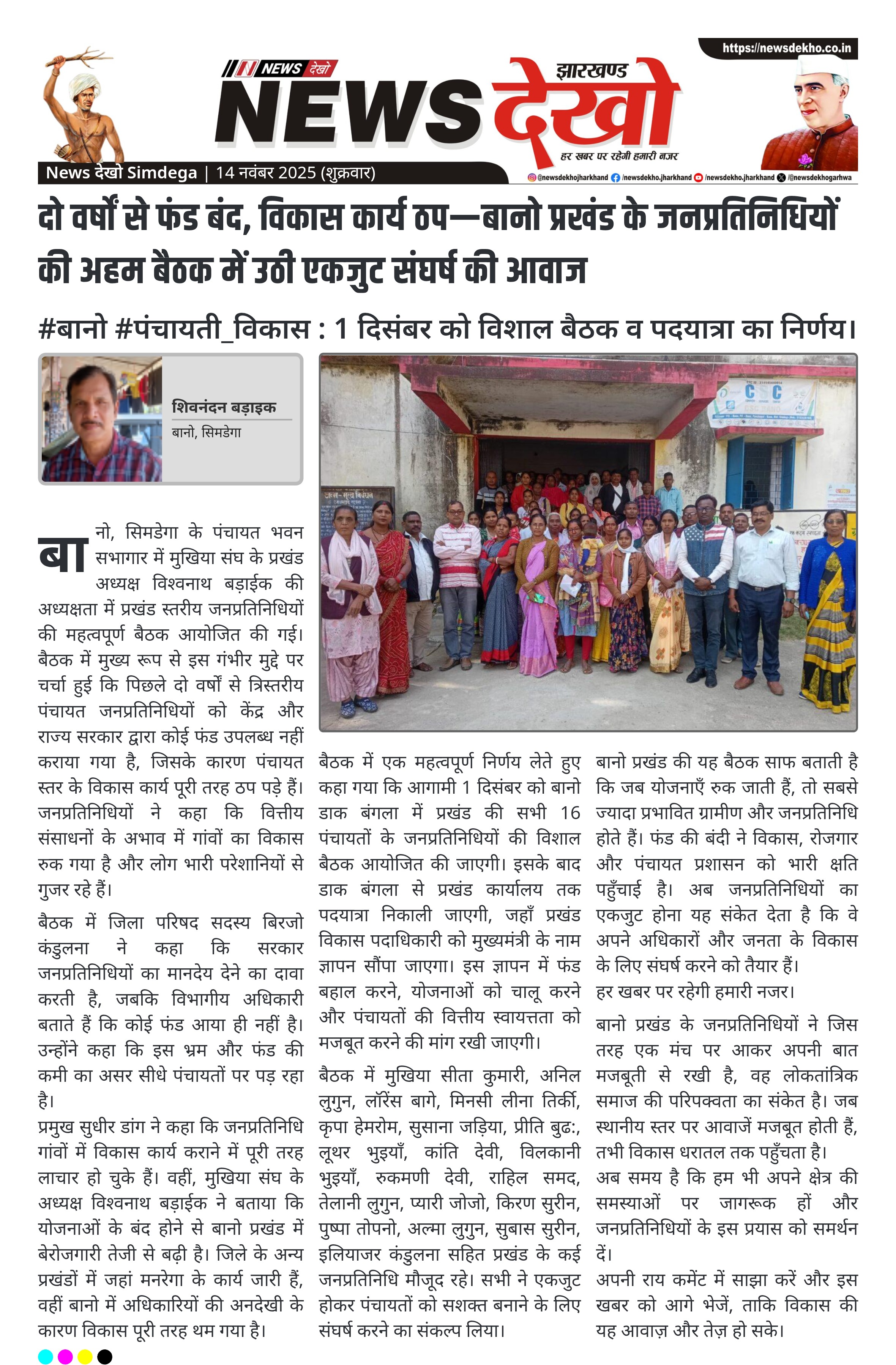 बानो प्रखंड के जनप्रतिनिधियों ने जिस तरह एक मंच पर आकर अपनी बात मजबूती से रखी है, वह लोकतांत्रिक समाज की परिपक्वता का संकेत है। जब स्थानीय स्तर पर आवाजें मजबूत होती हैं, तभी विकास धरातल तक पहुँचता है।