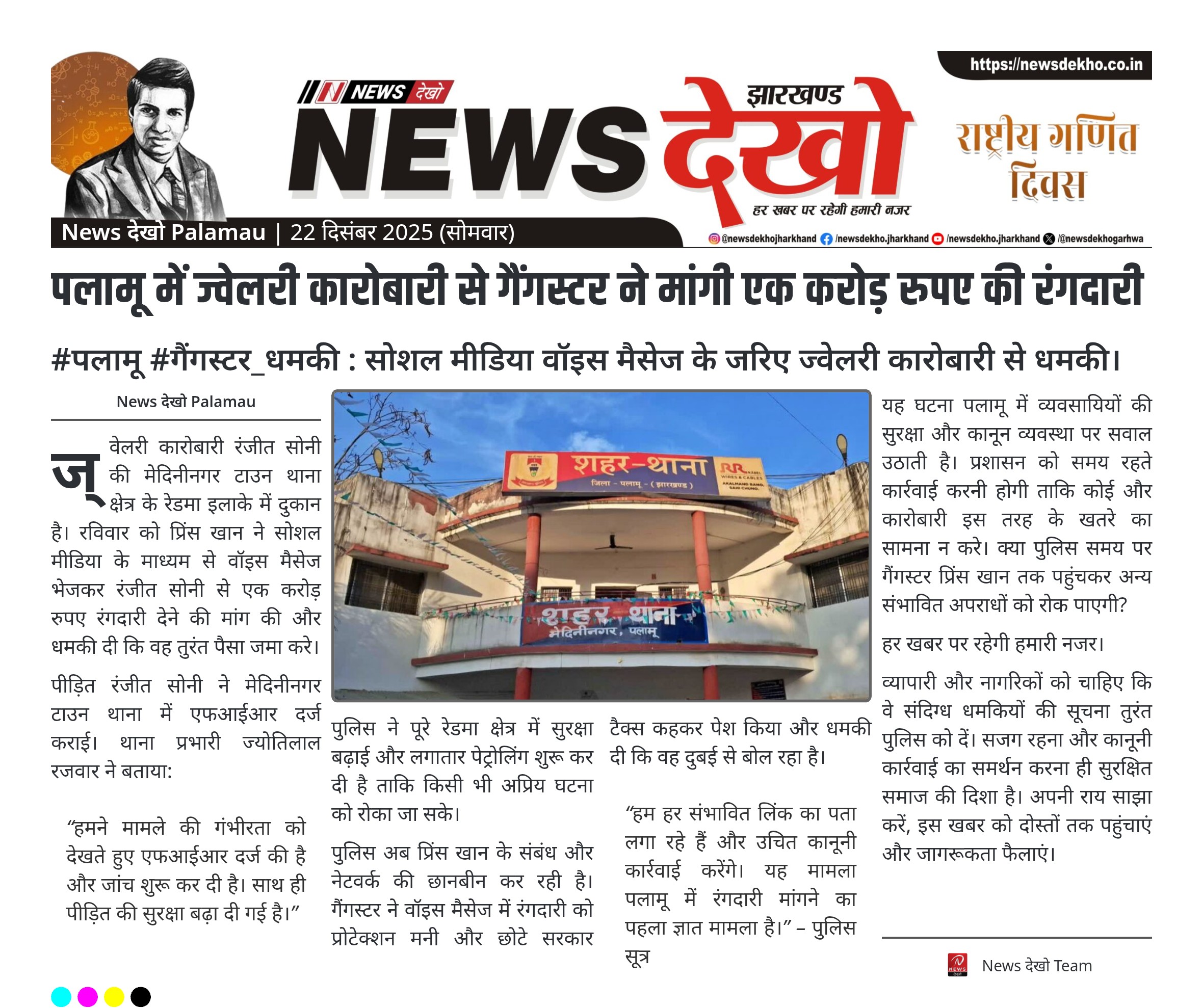 न्यूज़ देखो: पलामू में रंगदारी की बढ़ती घटनाओं पर नजर