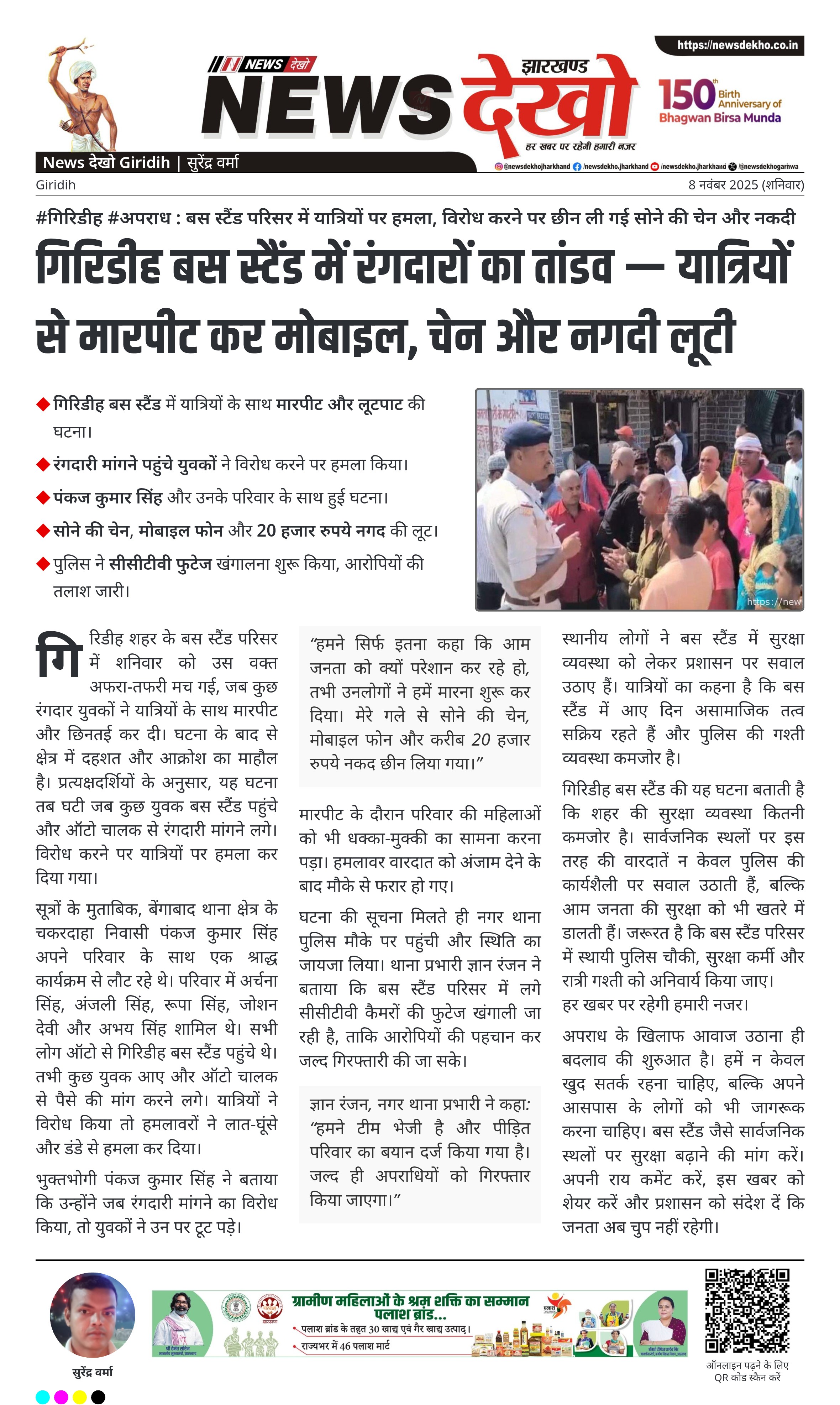 गिरिडीह बस स्टैंड की यह घटना बताती है कि शहर की सुरक्षा व्यवस्था कितनी कमजोर है। सार्वजनिक स्थलों पर इस तरह की वारदातें न केवल पुलिस की कार्यशैली पर सवाल उठाती हैं, बल्कि आम जनता की सुरक्षा को भी खतरे में डालती हैं। जरूरत है कि बस स्टैंड परिसर में स्थायी पुलिस चौकी, सुरक्षा कर्मी और रात्री गश्ती को अनिवार्य किया जाए।