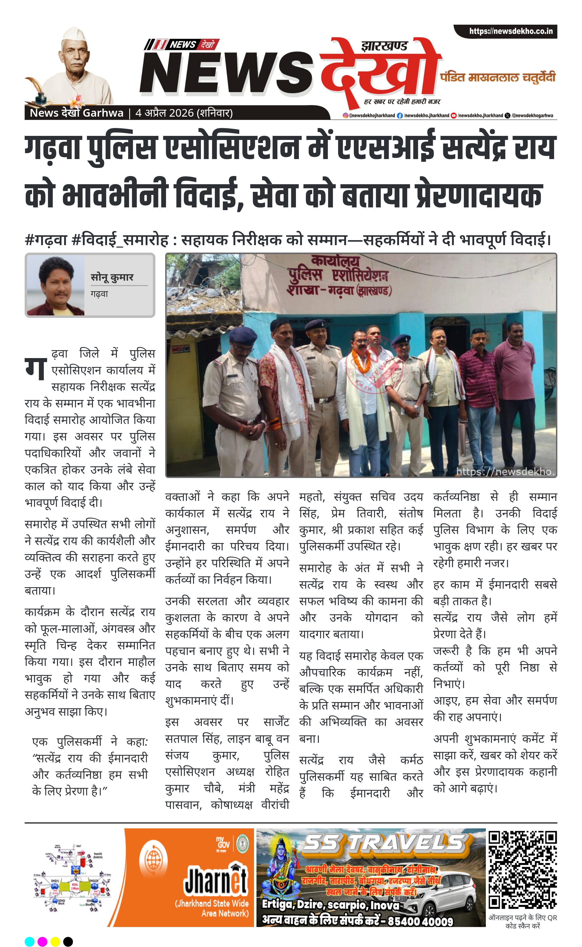 - पुलिस एसोसिएशन कार्यालय, गढ़वा में समारोह आयोजित।