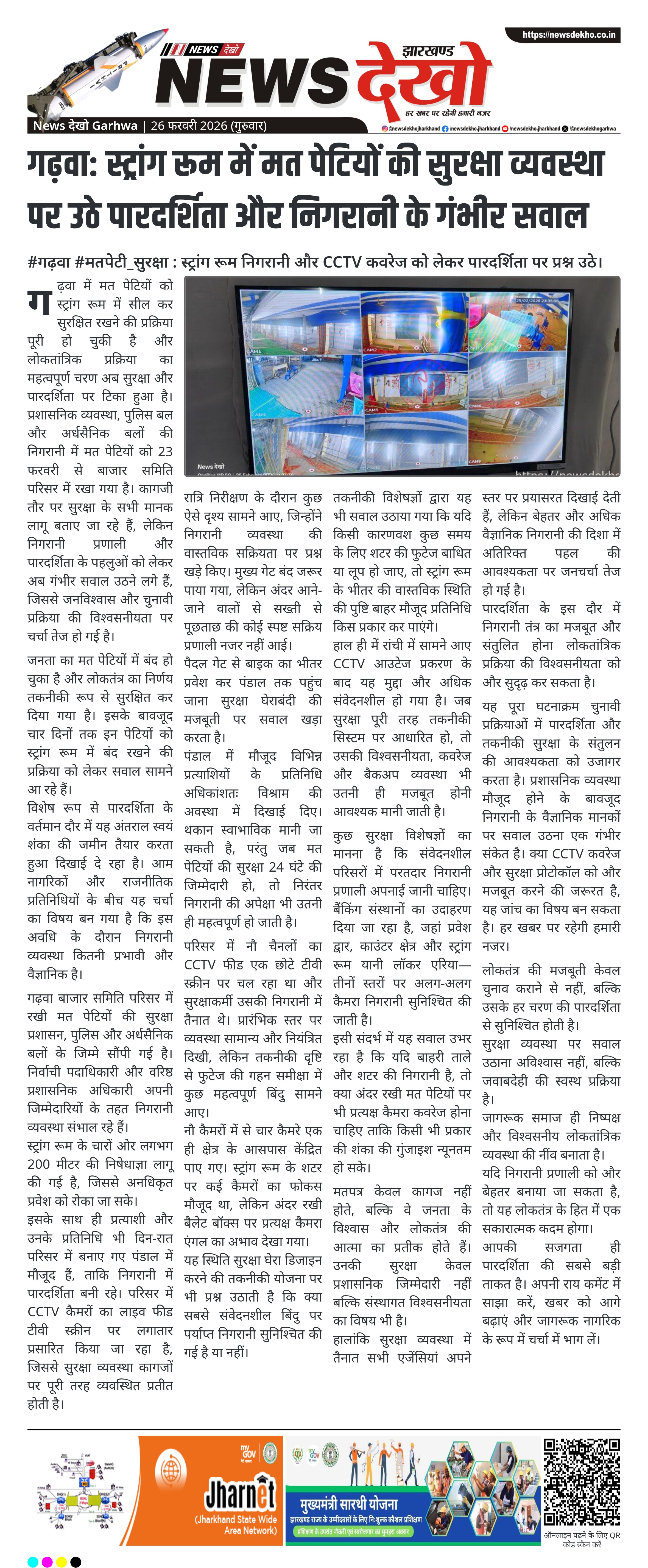 #गढ़वा #मतपेटी_सुरक्षा : स्ट्रांग रूम निगरानी और CCTV कवरेज को लेकर पारदर्शिता पर प्रश्न उठे।