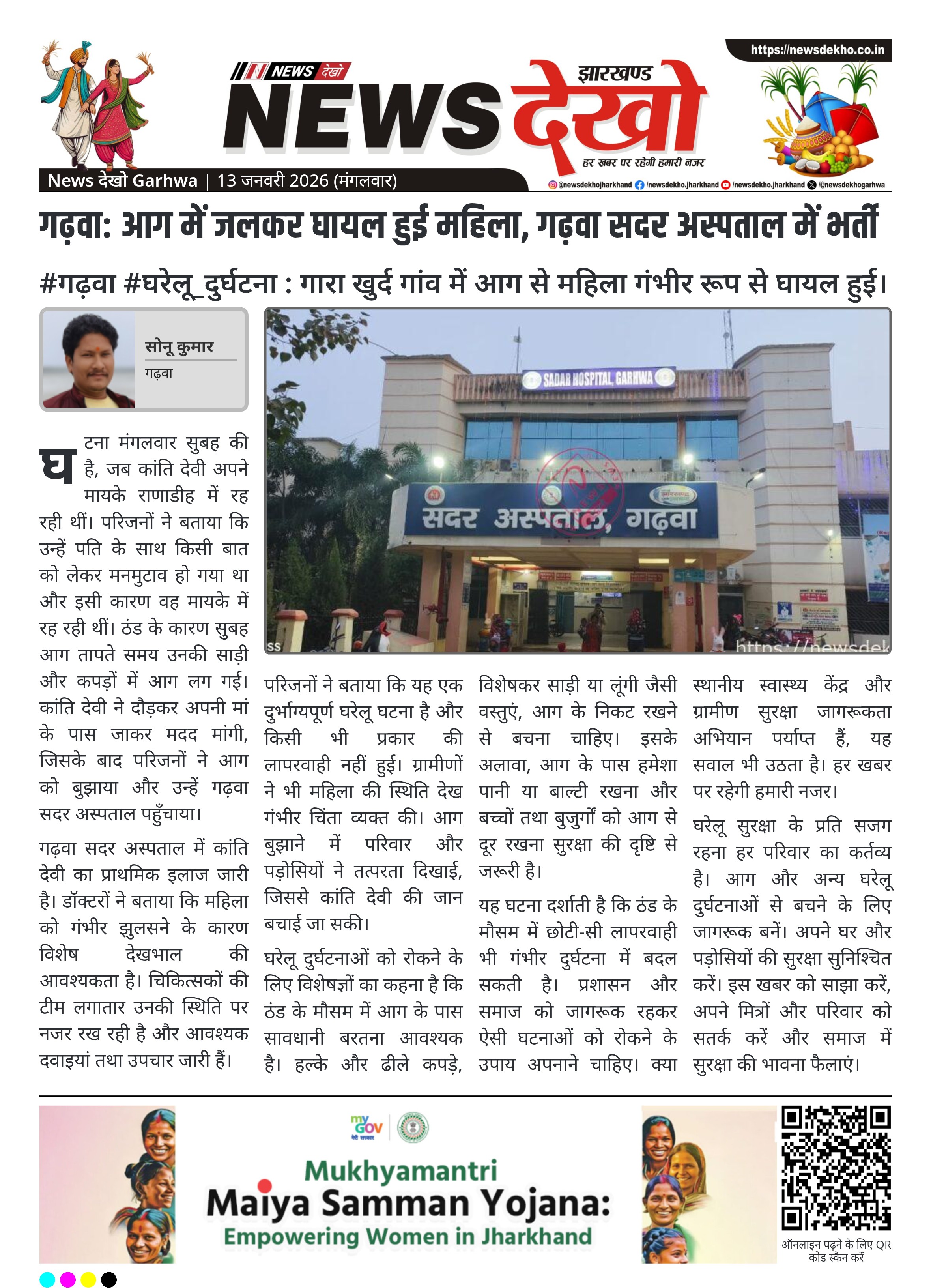 #गढ़वा #घरेलू_दुर्घटना : गारा खुर्द गांव में आग से महिला गंभीर रूप से घायल हुई।