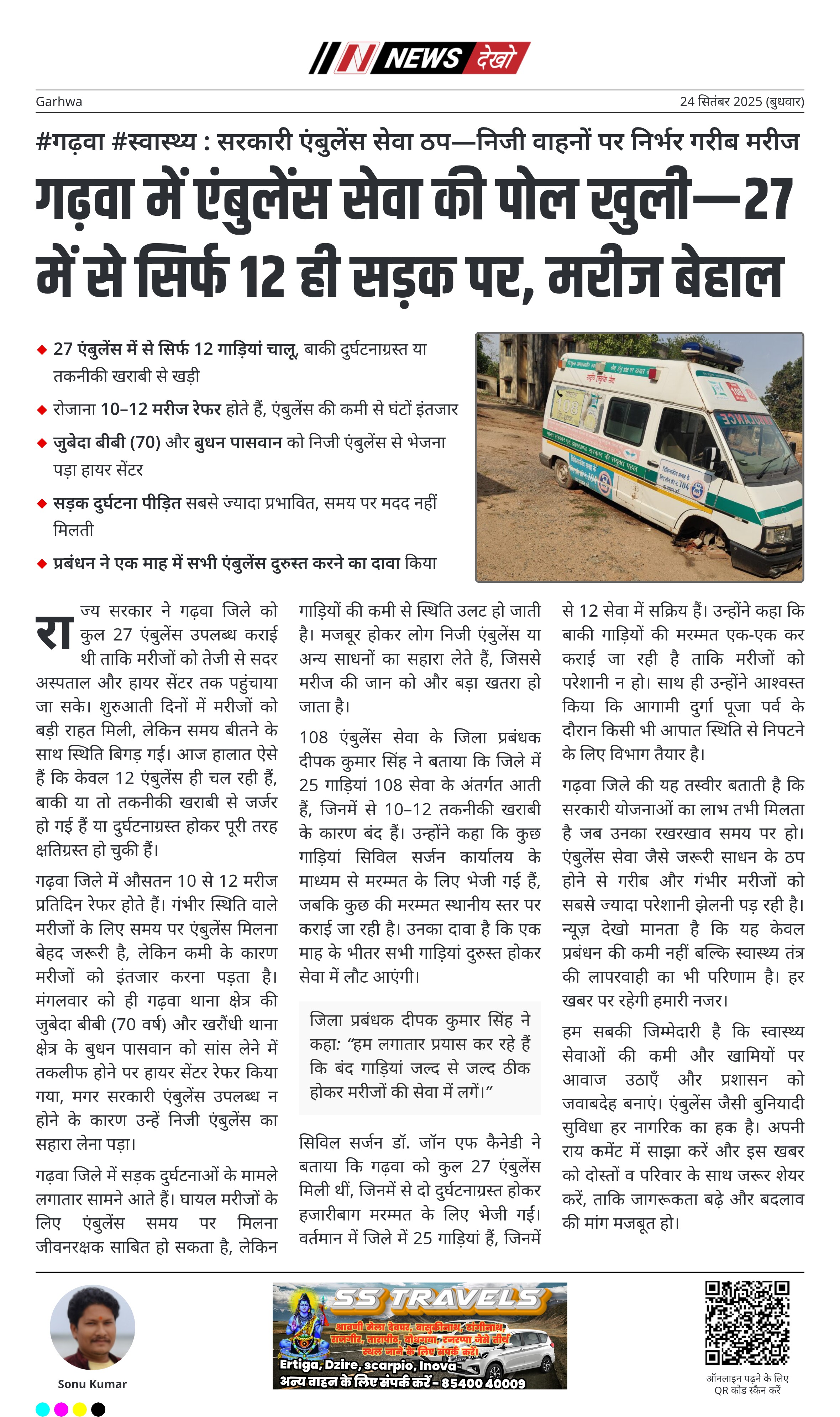 #गढ़वा #स्वास्थ्य : सरकारी एंबुलेंस सेवा ठप—निजी वाहनों पर निर्भर गरीब मरीज