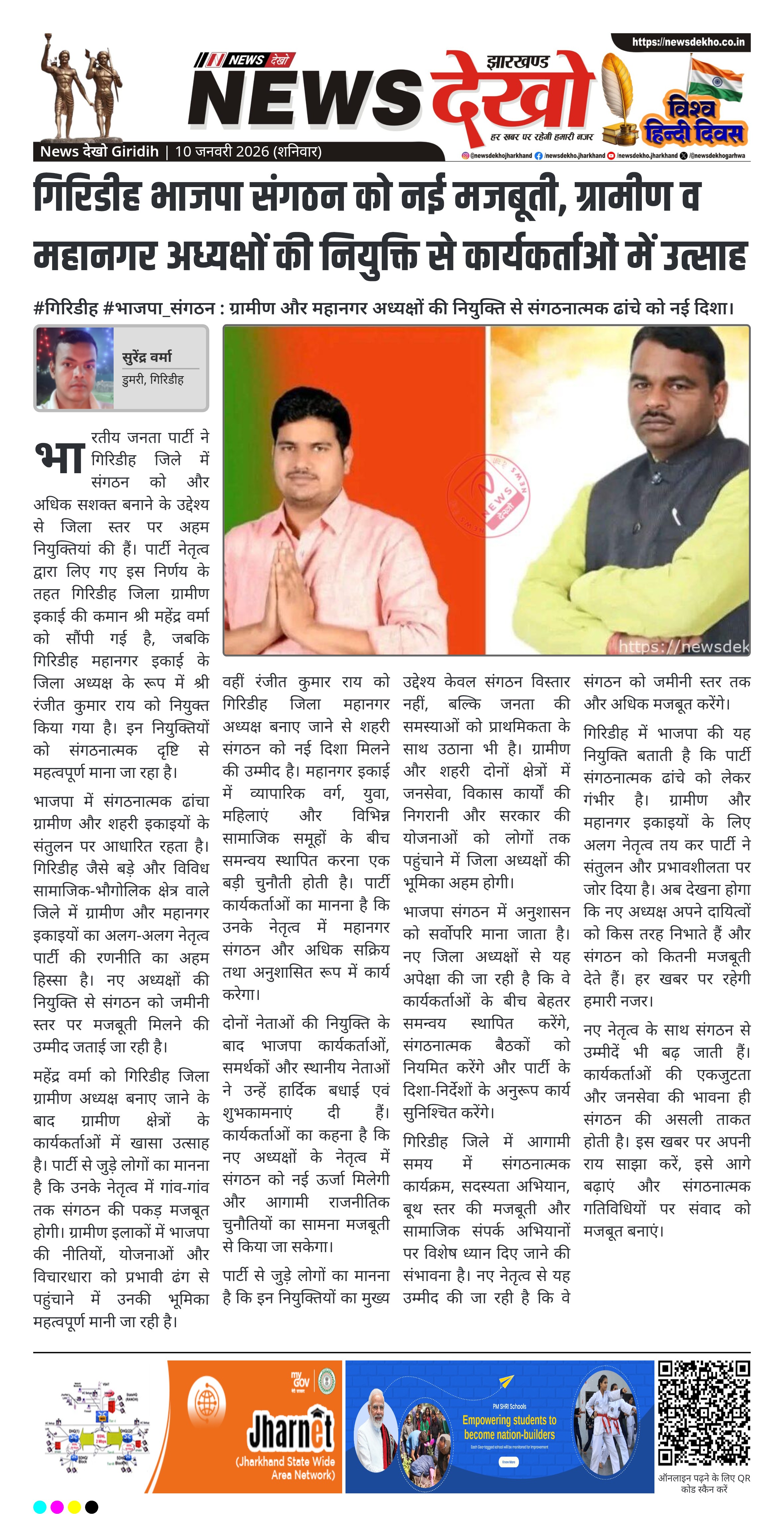 • महेंद्र वर्मा बने भाजपा गिरिडीह जिला अध्यक्ष ग्रामीण।