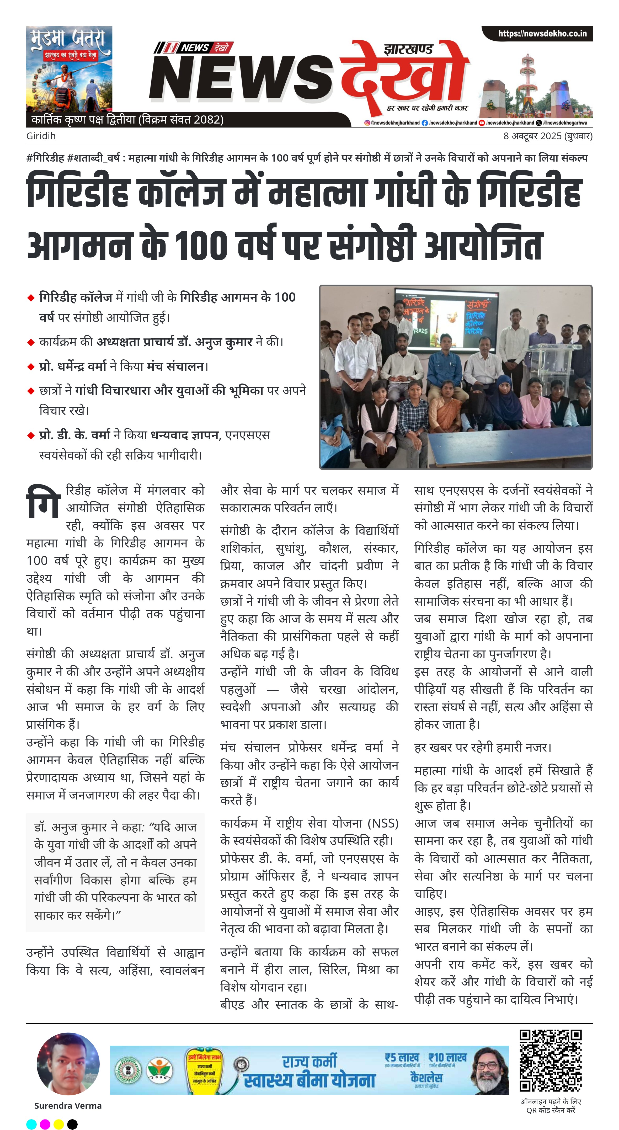 गिरिडीह कॉलेज का यह आयोजन इस बात का प्रतीक है कि गांधी जी के विचार केवल इतिहास नहीं, बल्कि आज की सामाजिक संरचना का भी आधार हैं।