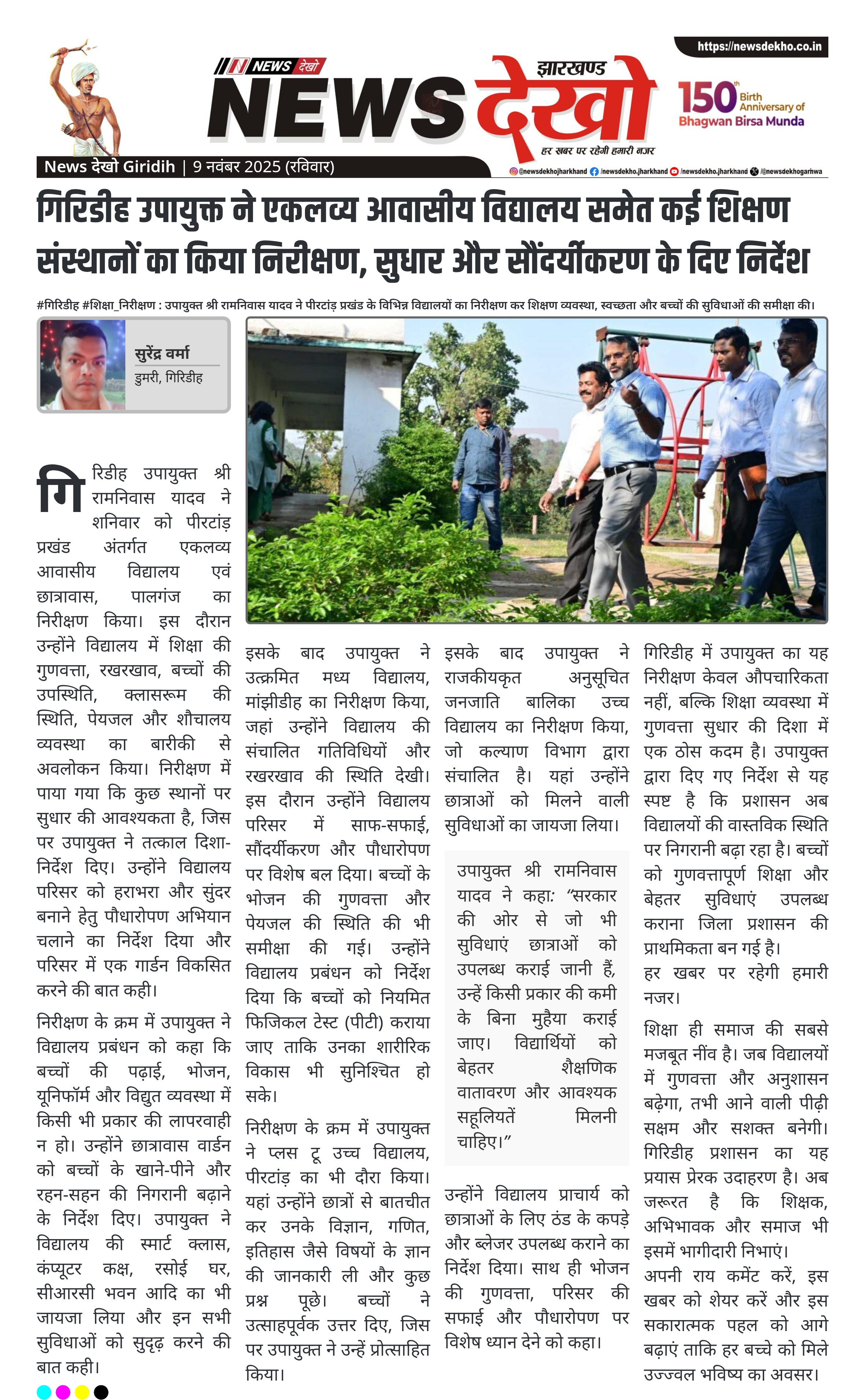 • उपायुक्त ने विद्यालय परिसर में पौधारोपण और गार्डन विकसित करने के निर्देश दिए।