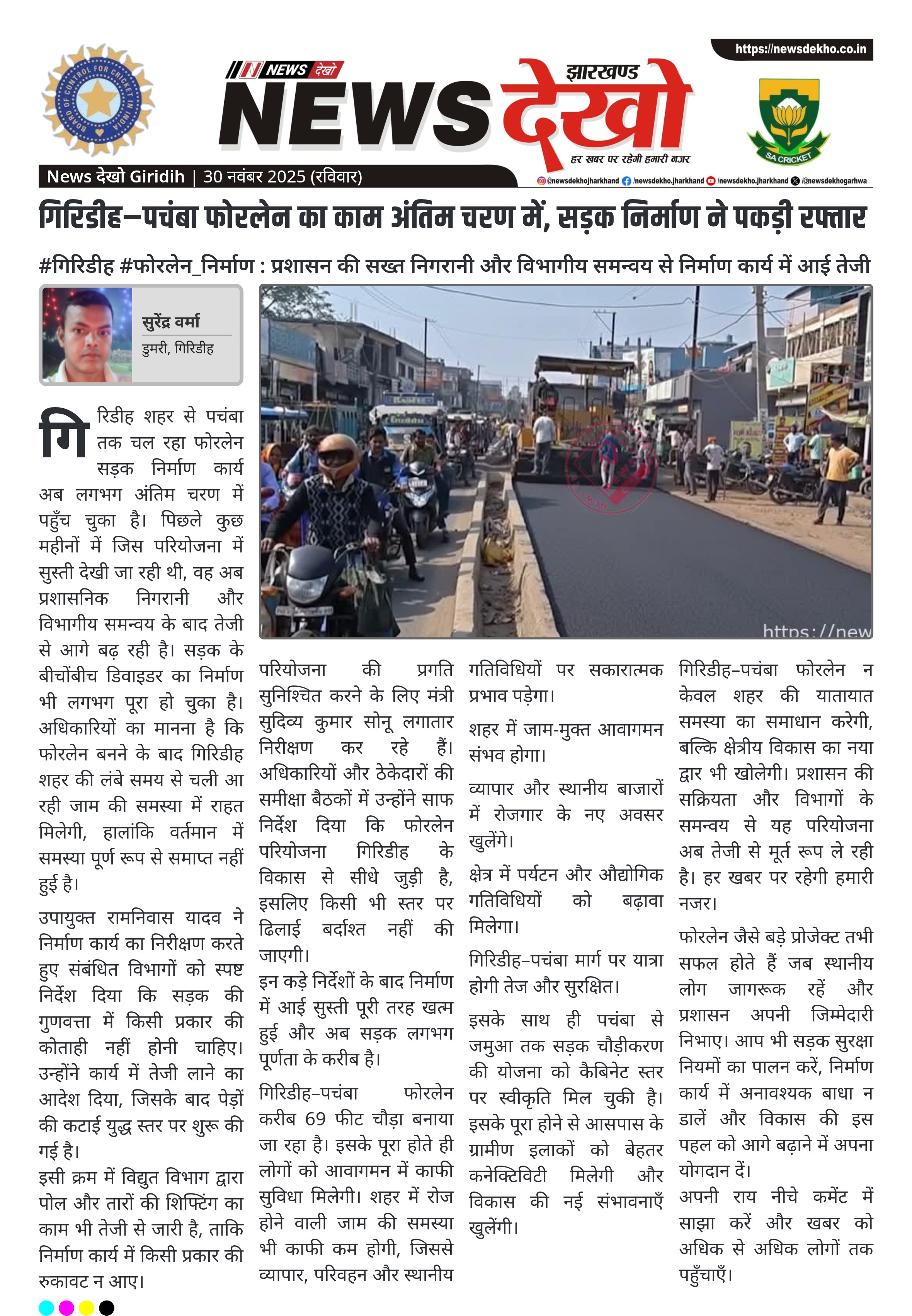 न्यूज़ देखो: गिरिडीह के विकास का मजबूत आधार बनती फोरलेन परियोजना