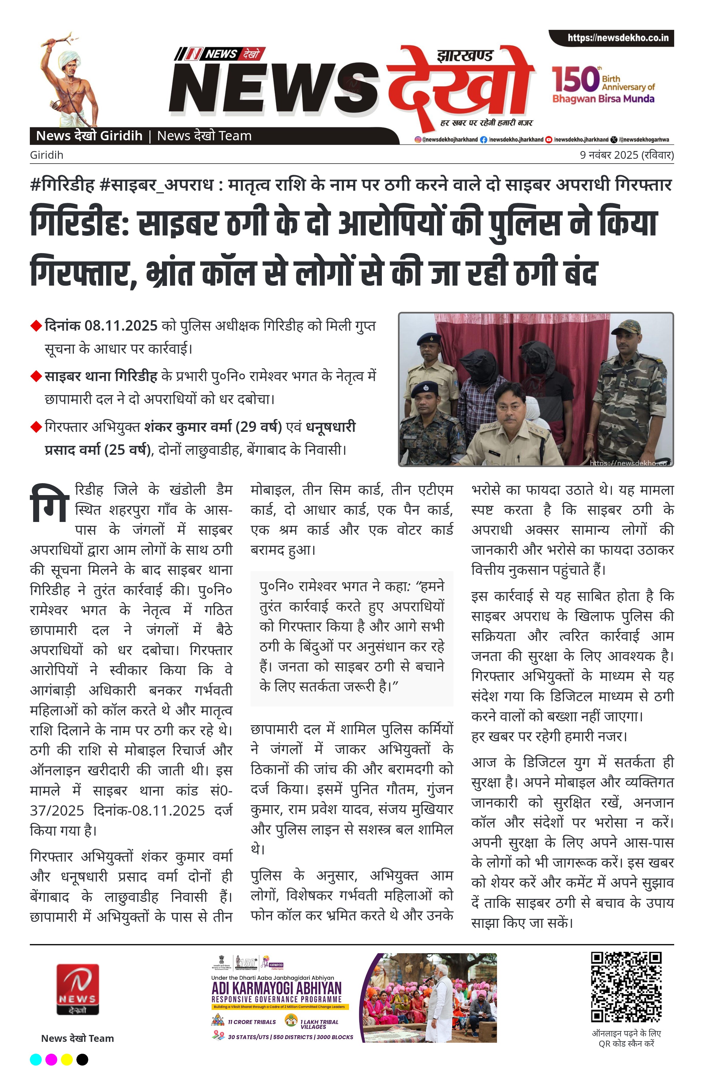 #गिरिडीह #साइबर_अपराध : मातृत्व राशि के नाम पर ठगी करने वाले दो साइबर अपराधी गिरफ्तार