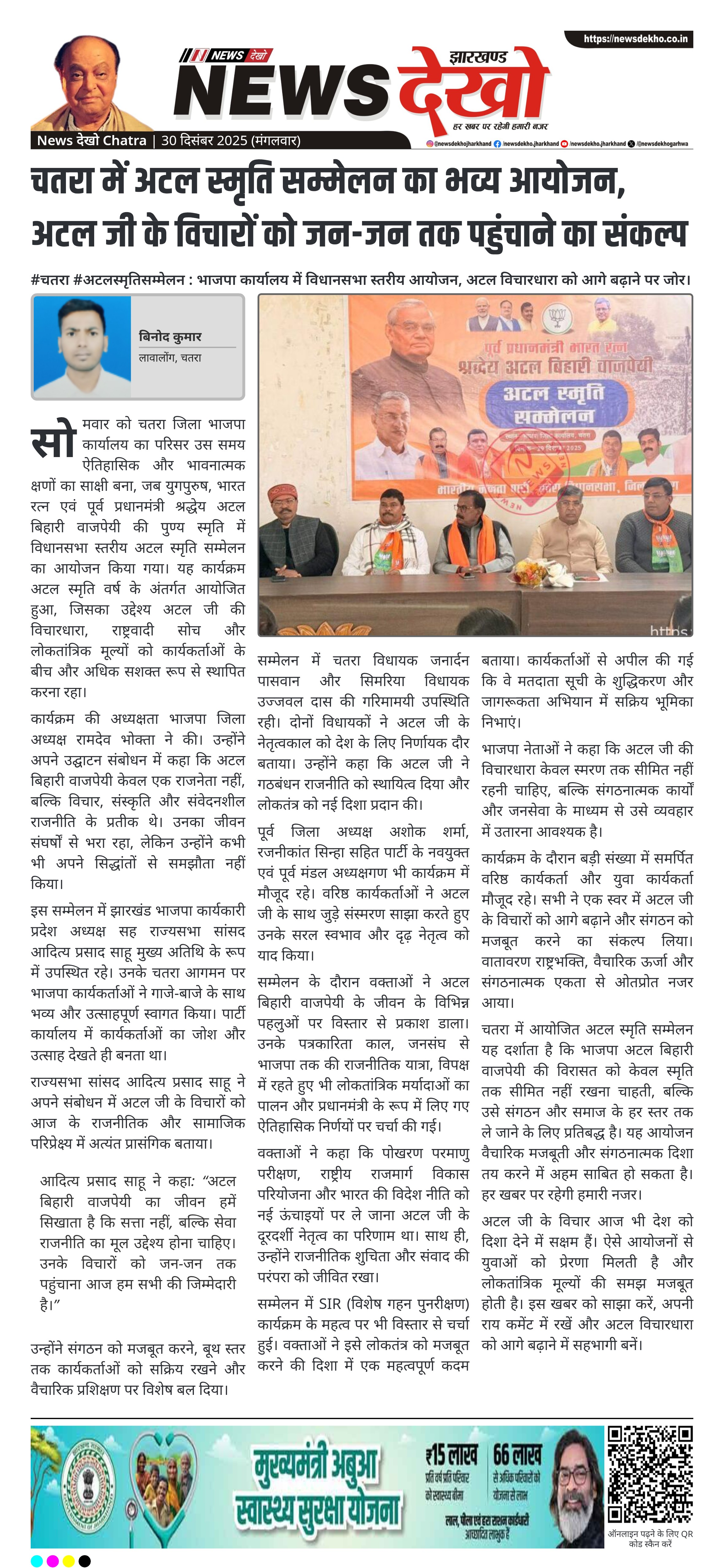 चतरा में अटल स्मृति सम्मेलन का भव्य आयोजन, अटल जी के विचारों को जन-जन तक पहुंचाने का संकल्प