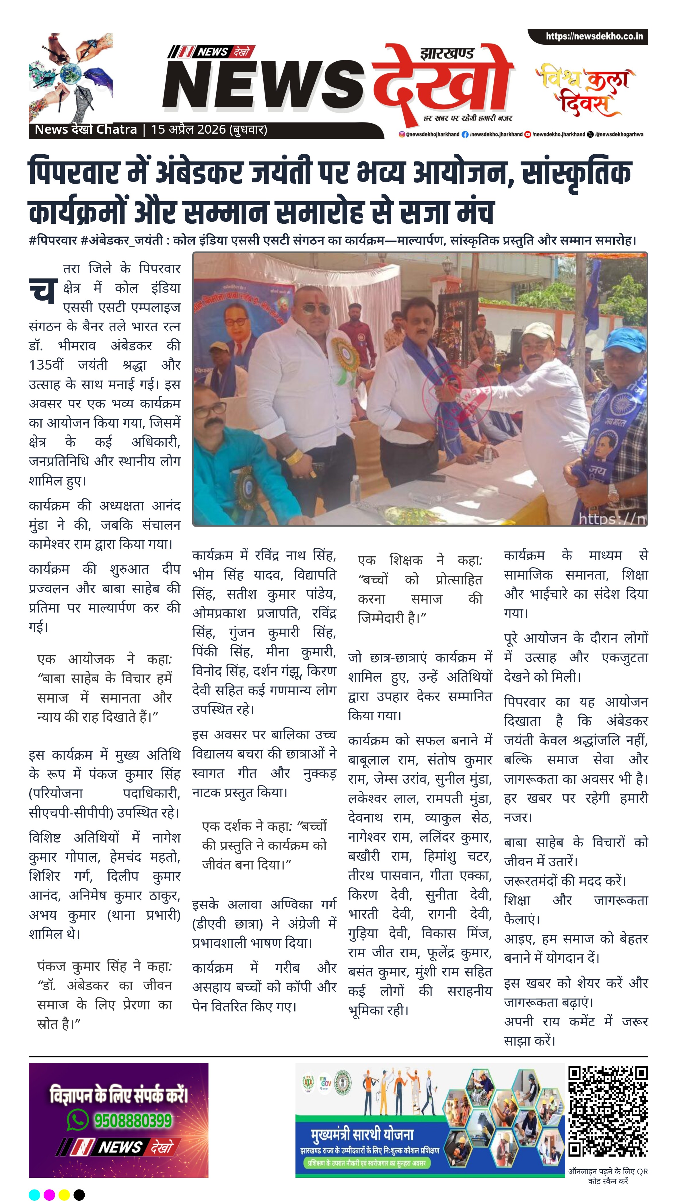 - पिपरवार में 135वीं अंबेडकर जयंती समारोह आयोजित।