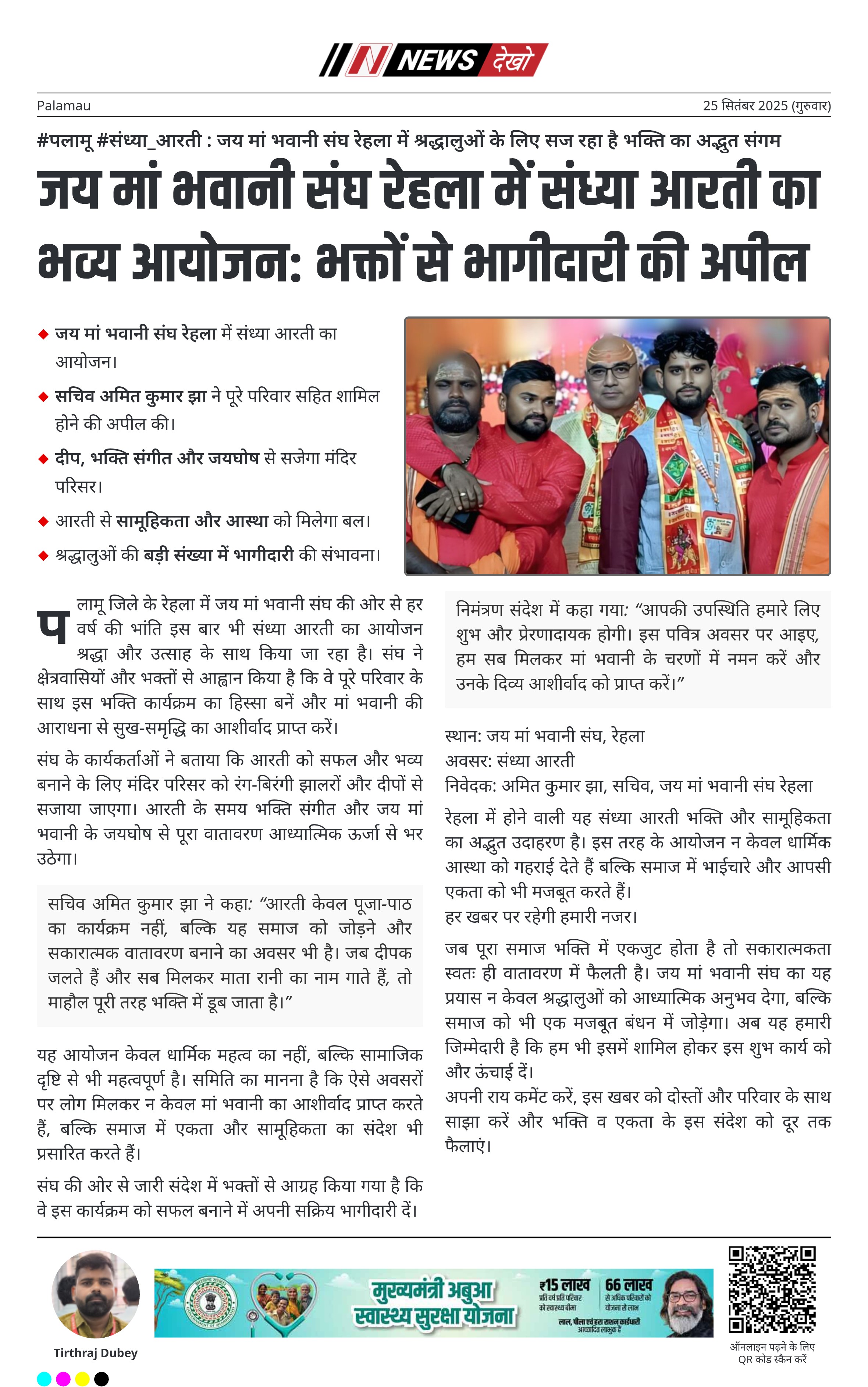 रेहला में होने वाली यह संध्या आरती भक्ति और सामूहिकता का अद्भुत उदाहरण है। इस तरह के आयोजन न केवल धार्मिक आस्था को गहराई देते हैं बल्कि समाज में भाईचारे और आपसी एकता को भी मजबूत करते हैं।