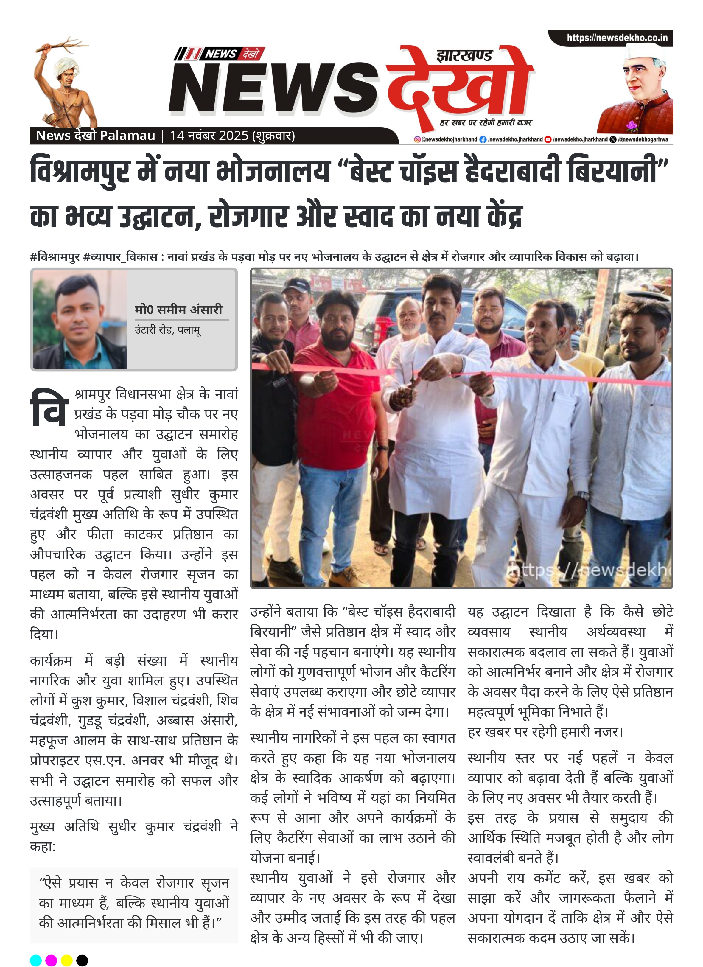 उन्होंने बताया कि “बेस्ट चॉइस हैदराबादी बिरयानी” जैसे प्रतिष्ठान क्षेत्र में स्वाद और सेवा की नई पहचान बनाएंगे। यह स्थानीय लोगों को गुणवत्तापूर्ण भोजन और कैटरिंग सेवाएं उपलब्ध कराएगा और छोटे व्यापार के क्षेत्र में नई संभावनाओं को जन्म देगा।