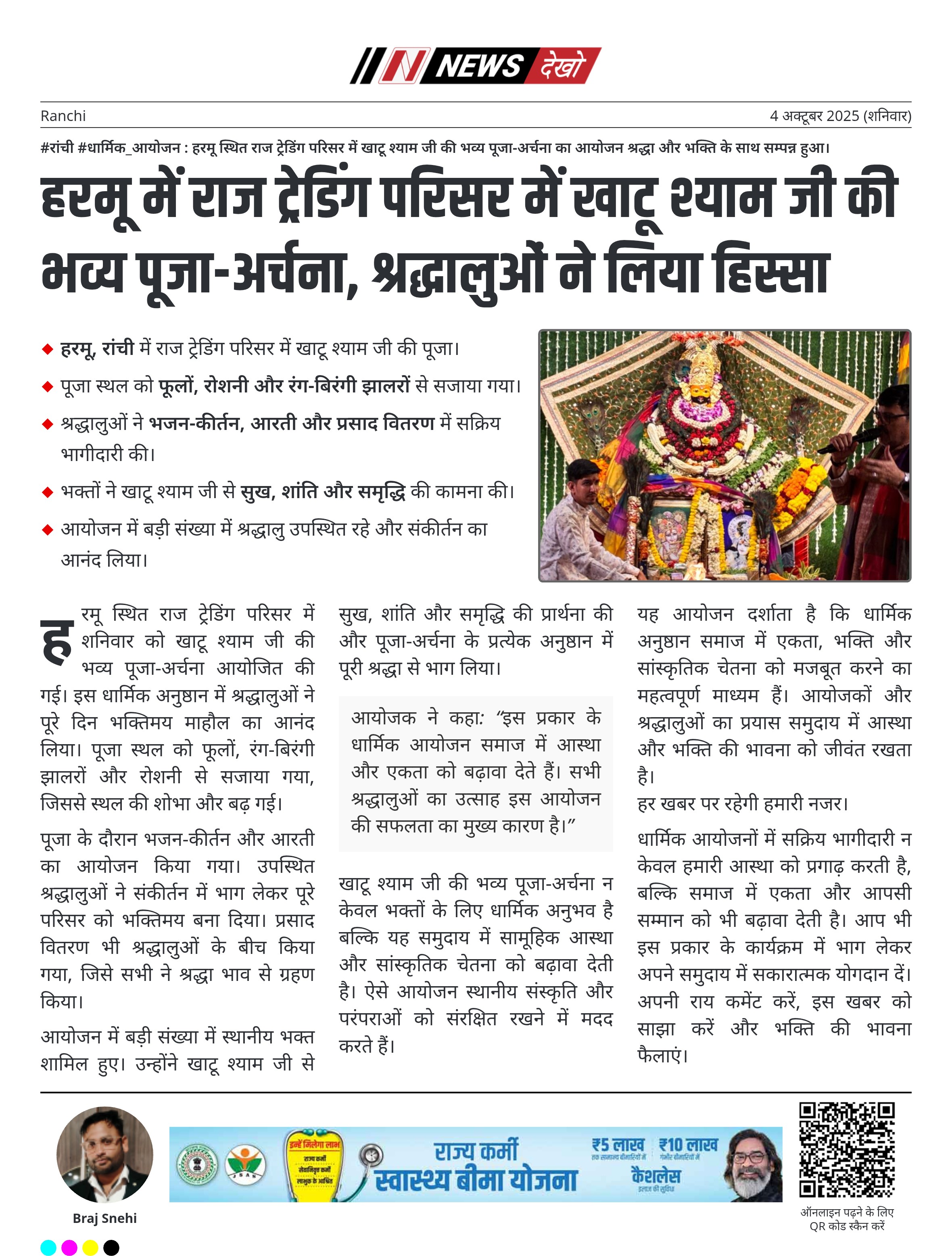 न्यूज़ देखो: रांची में खाटू श्याम जी की पूजा ने बढ़ाई धार्मिक उत्साह और सामुदायिक जुड़ाव