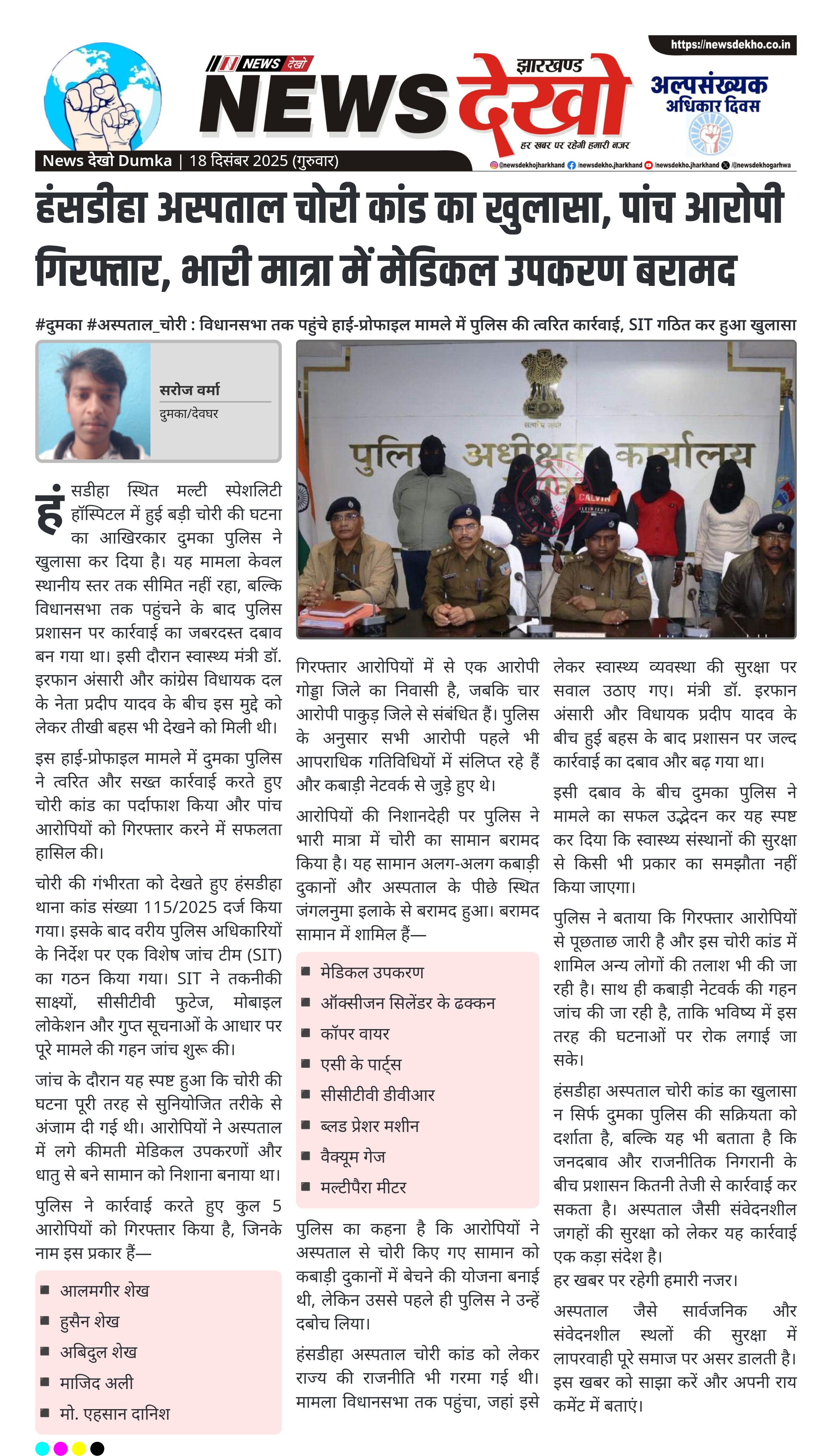 #दुमका #अस्पताल_चोरी : विधानसभा तक पहुंचे हाई-प्रोफाइल मामले में पुलिस की त्वरित कार्रवाई, SIT गठित कर हुआ खुलासा