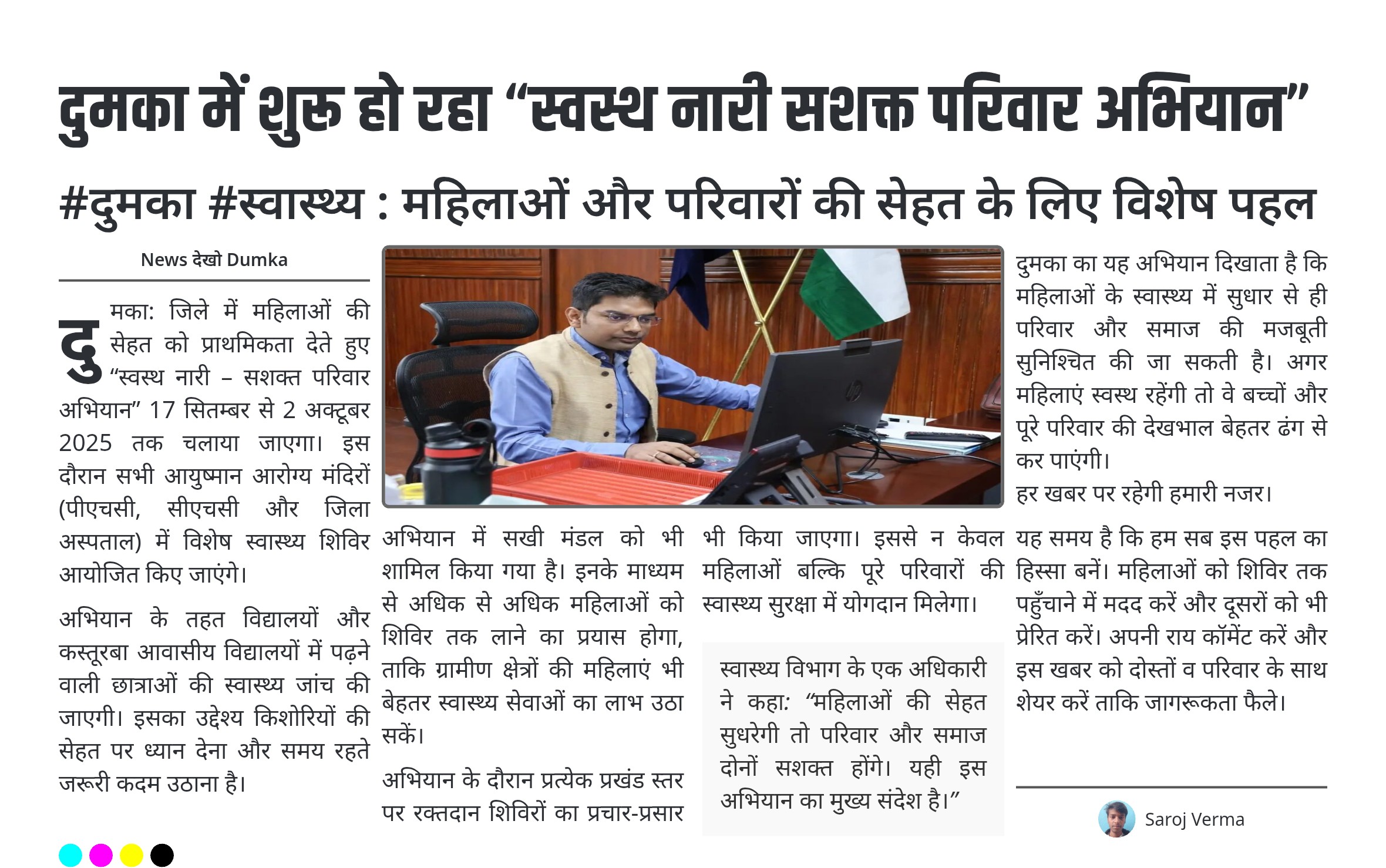 दुमका में शुरू हो रहा “स्वस्थ नारी सशक्त परिवार अभियान”