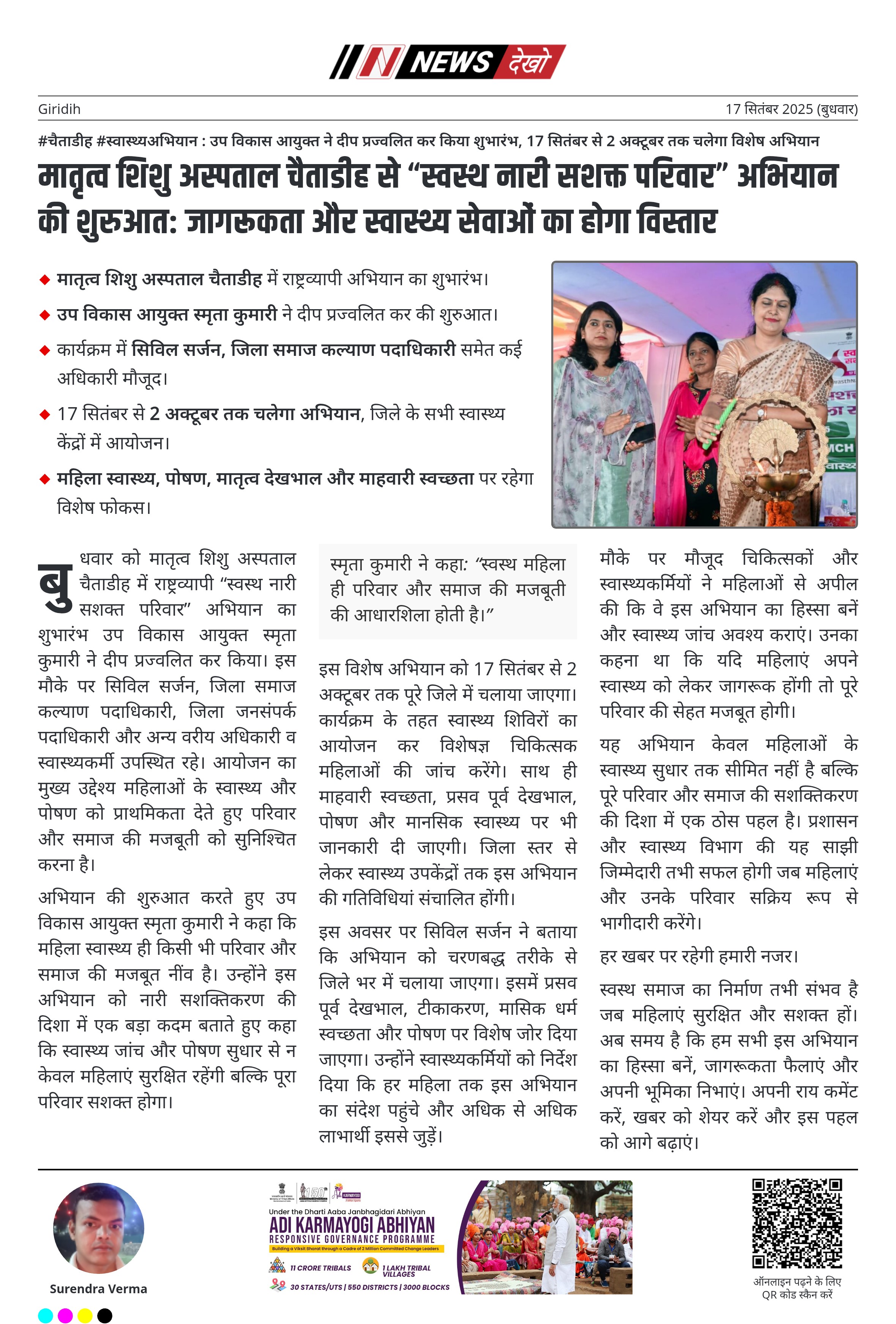 #चैताडीह #स्वास्थ्यअभियान : उप विकास आयुक्त ने दीप प्रज्वलित कर किया शुभारंभ, 17 सितंबर से 2 अक्टूबर तक चलेगा विशेष अभियान