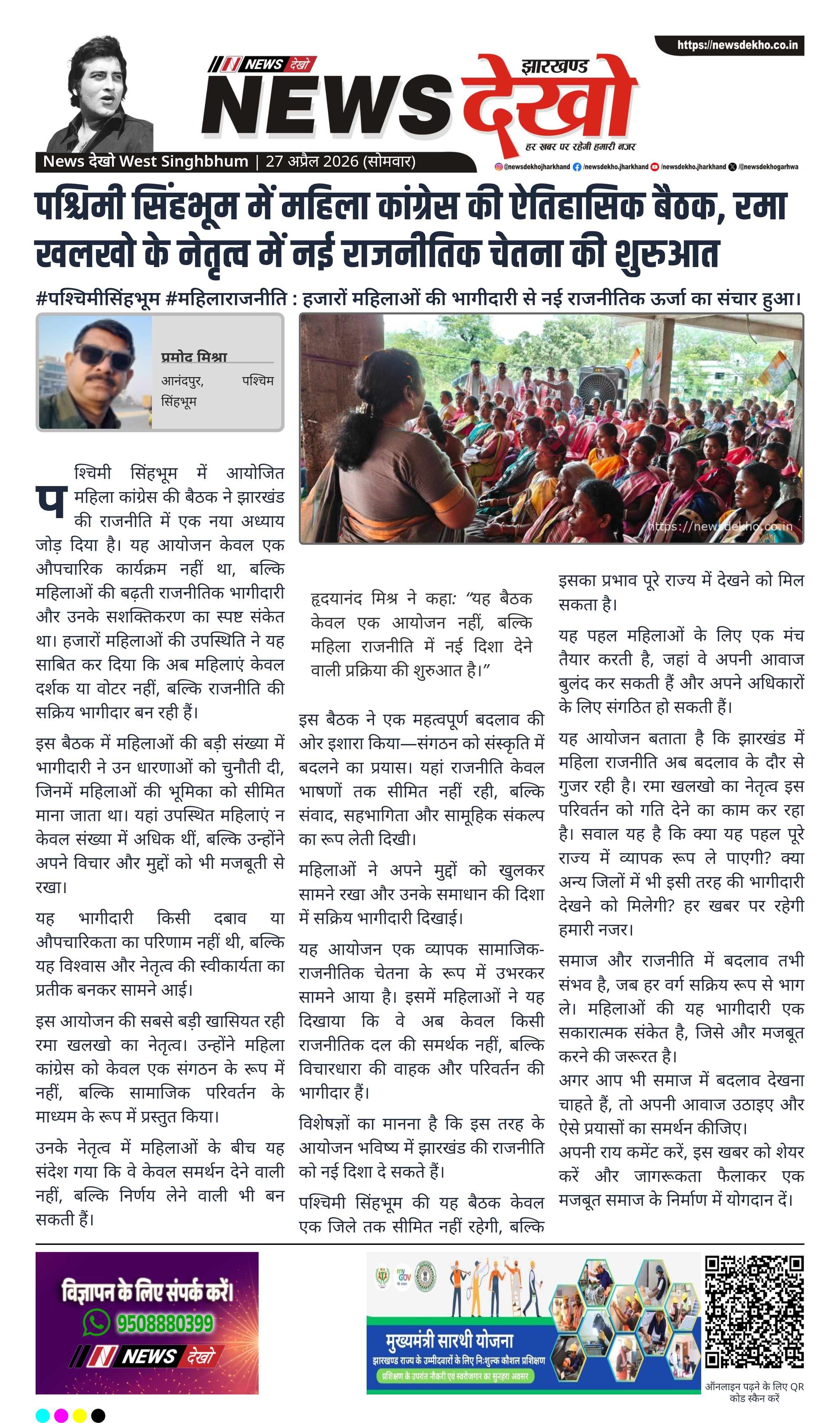 यह आयोजन बताता है कि झारखंड में महिला राजनीति अब बदलाव के दौर से गुजर रही है। रमा खलखो का नेतृत्व इस परिवर्तन को गति देने का काम कर रहा है। सवाल यह है कि क्या यह पहल पूरे राज्य में व्यापक रूप ले पाएगी? क्या अन्य जिलों में भी इसी तरह की भागीदारी देखने को मिलेगी? हर खबर पर रहेगी हमारी नजर।