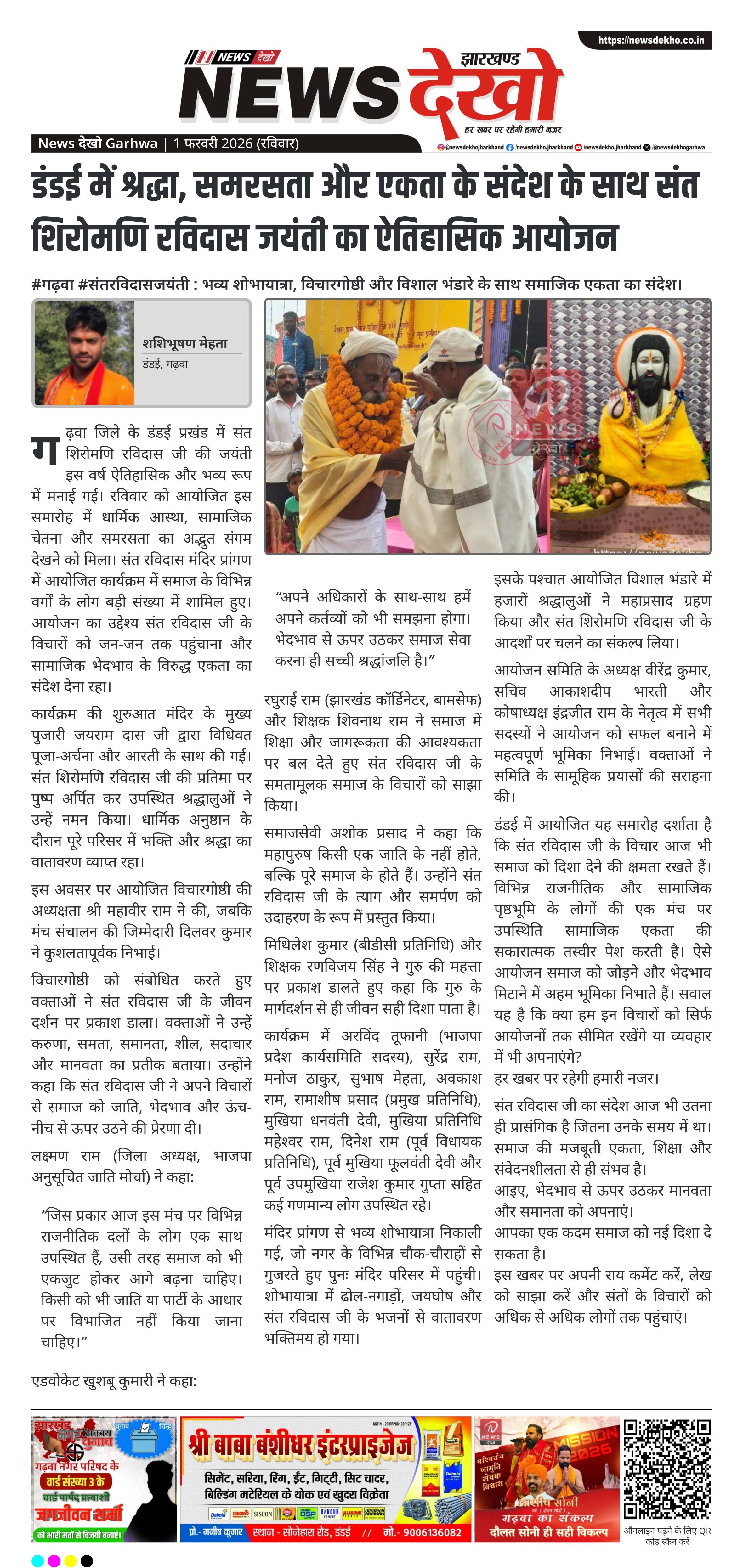 #गढ़वा #संतरविदासजयंती : भव्य शोभायात्रा, विचारगोष्ठी और विशाल भंडारे के साथ समाजिक एकता का संदेश।