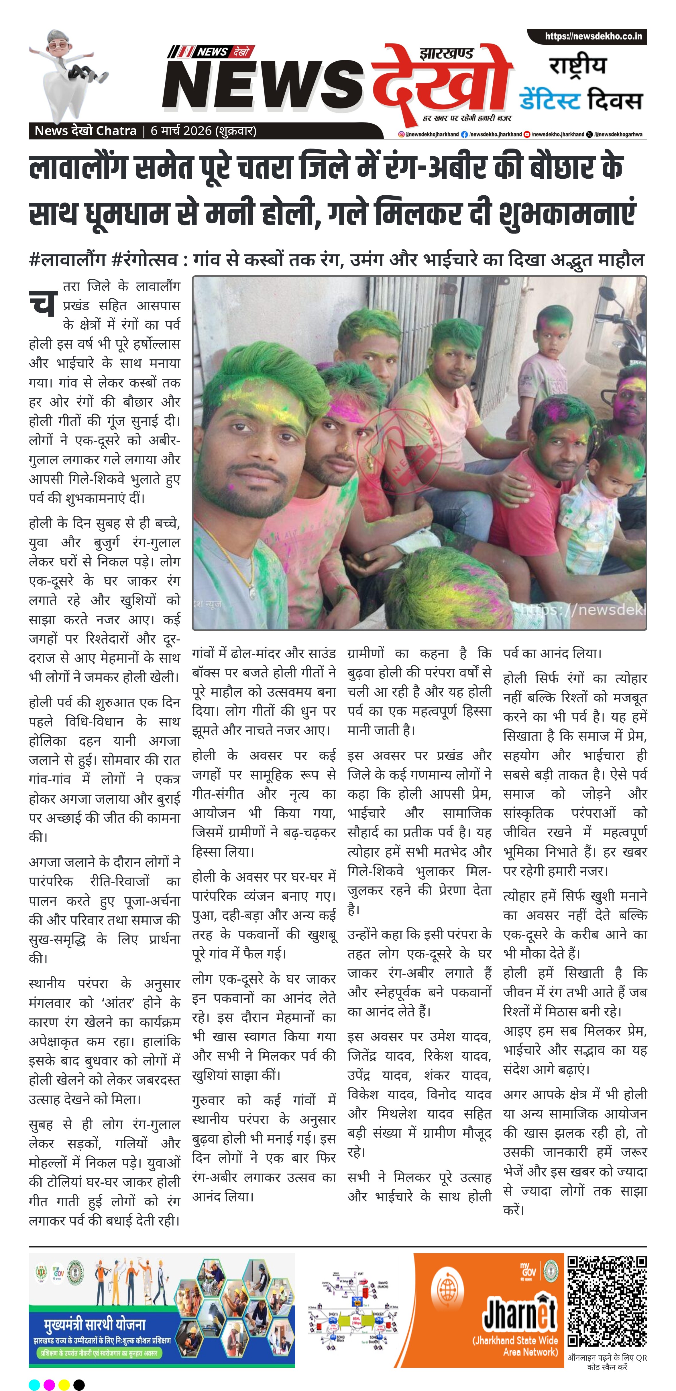 - लावालौंग प्रखंड सहित पूरे चतरा जिले में धूमधाम और उत्साह के साथ मना रंगों का पर्व होली।