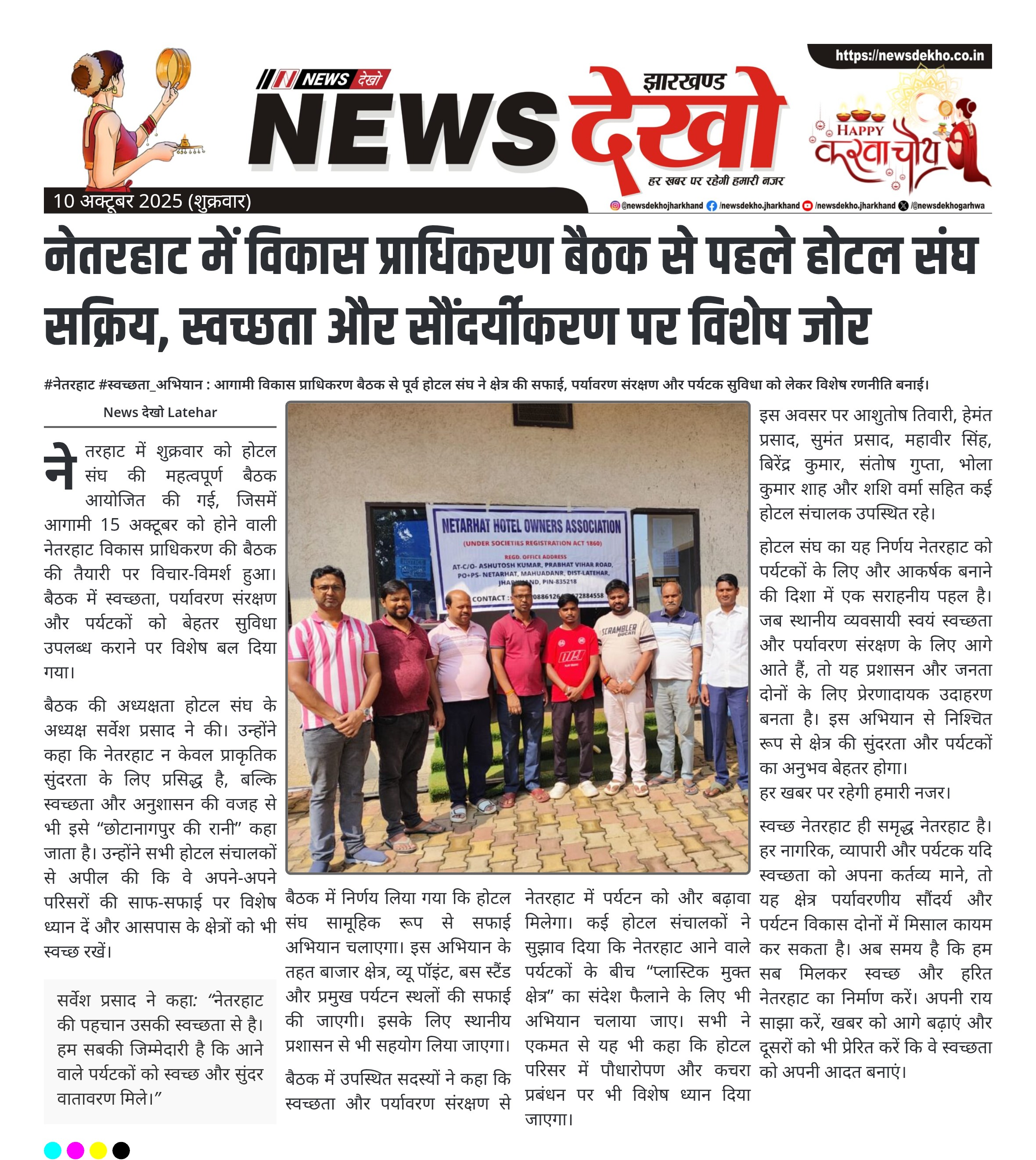 - होटल संघ अध्यक्ष सर्वेश प्रसाद ने स्वच्छता को नेतरहाट की पहचान बताया।