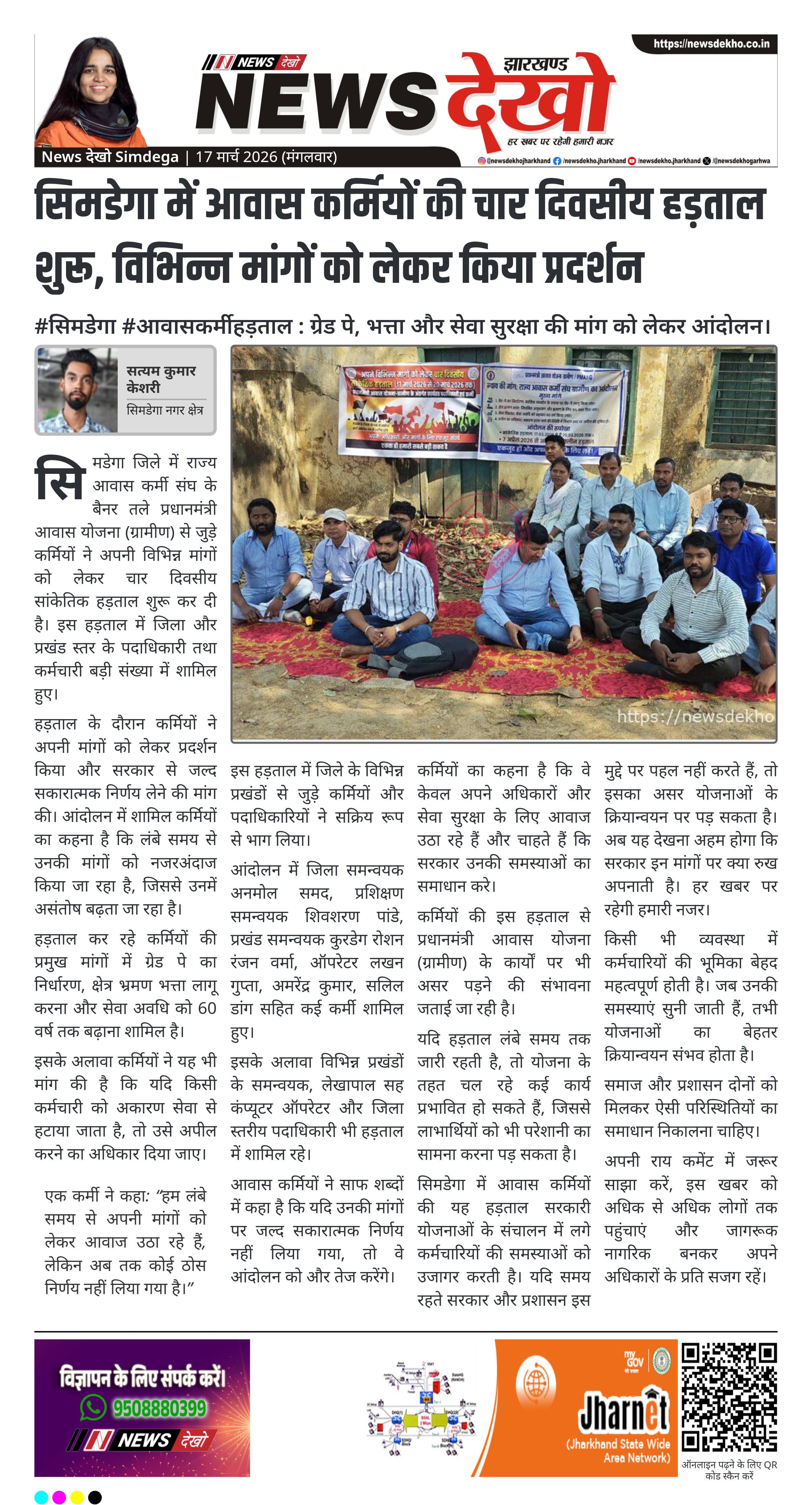 #सिमडेगा #आवासकर्मीहड़ताल : ग्रेड पे, भत्ता और सेवा सुरक्षा की मांग को लेकर आंदोलन।