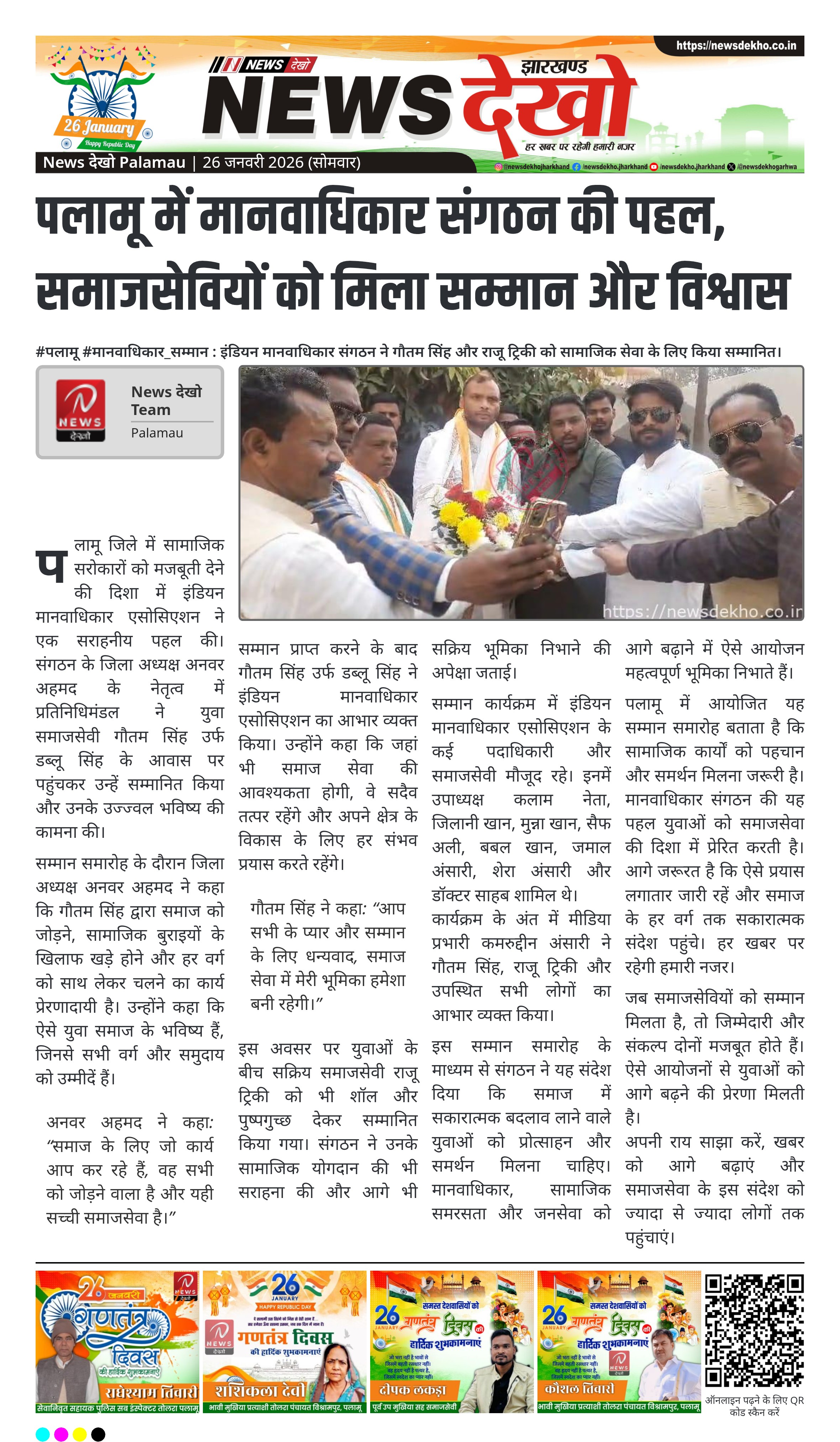 • इंडियन मानवाधिकार एसोसिएशन द्वारा पलामू में सम्मान कार्यक्रम।