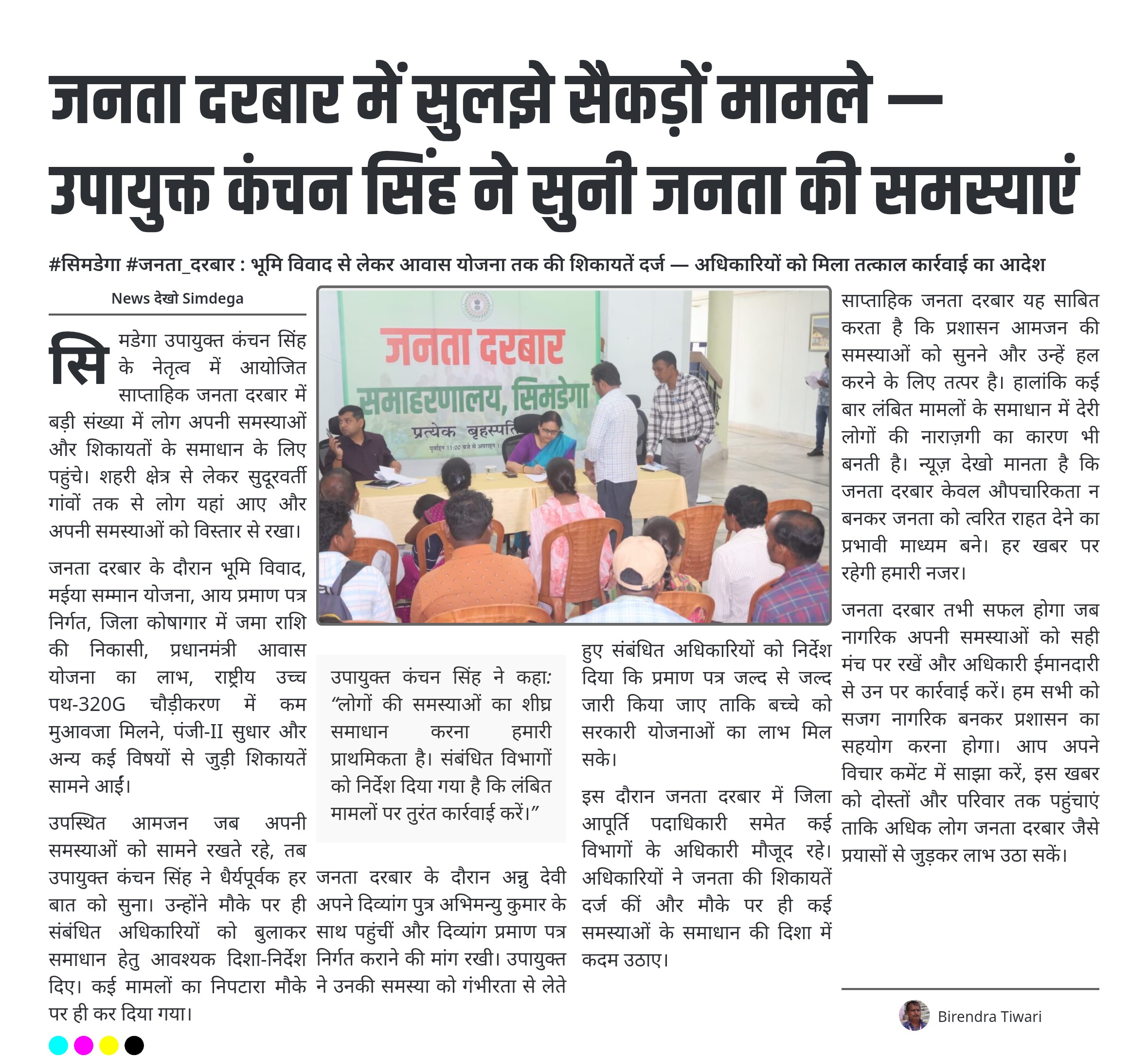 #सिमडेगा #जनता_दरबार : भूमि विवाद से लेकर आवास योजना तक की शिकायतें दर्ज — अधिकारियों को मिला तत्काल कार्रवाई का आदेश