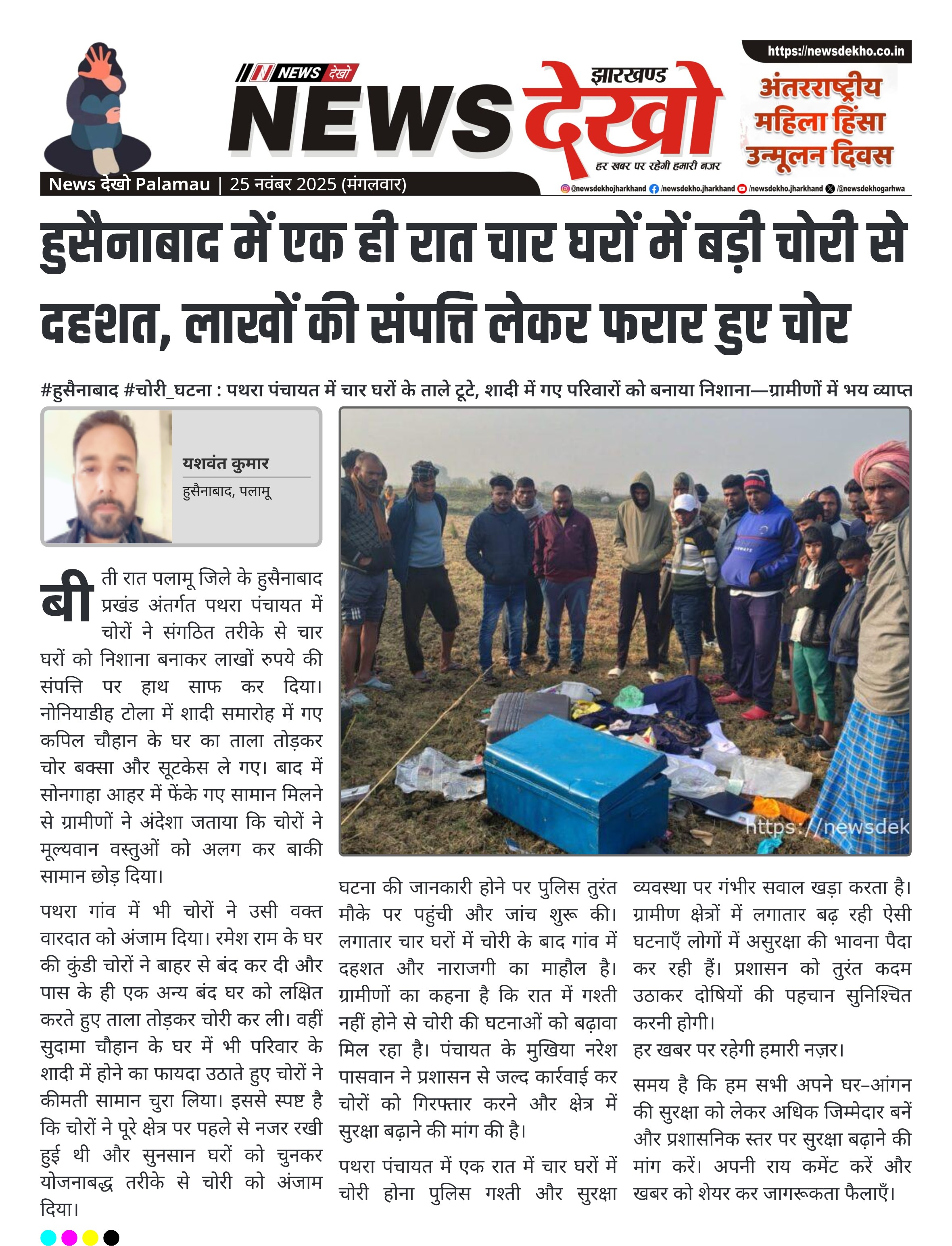 #हुसैनाबाद #चोरी_घटना : पथरा पंचायत में चार घरों के ताले टूटे, शादी में गए परिवारों को बनाया निशाना—ग्रामीणों में भय व्याप्त