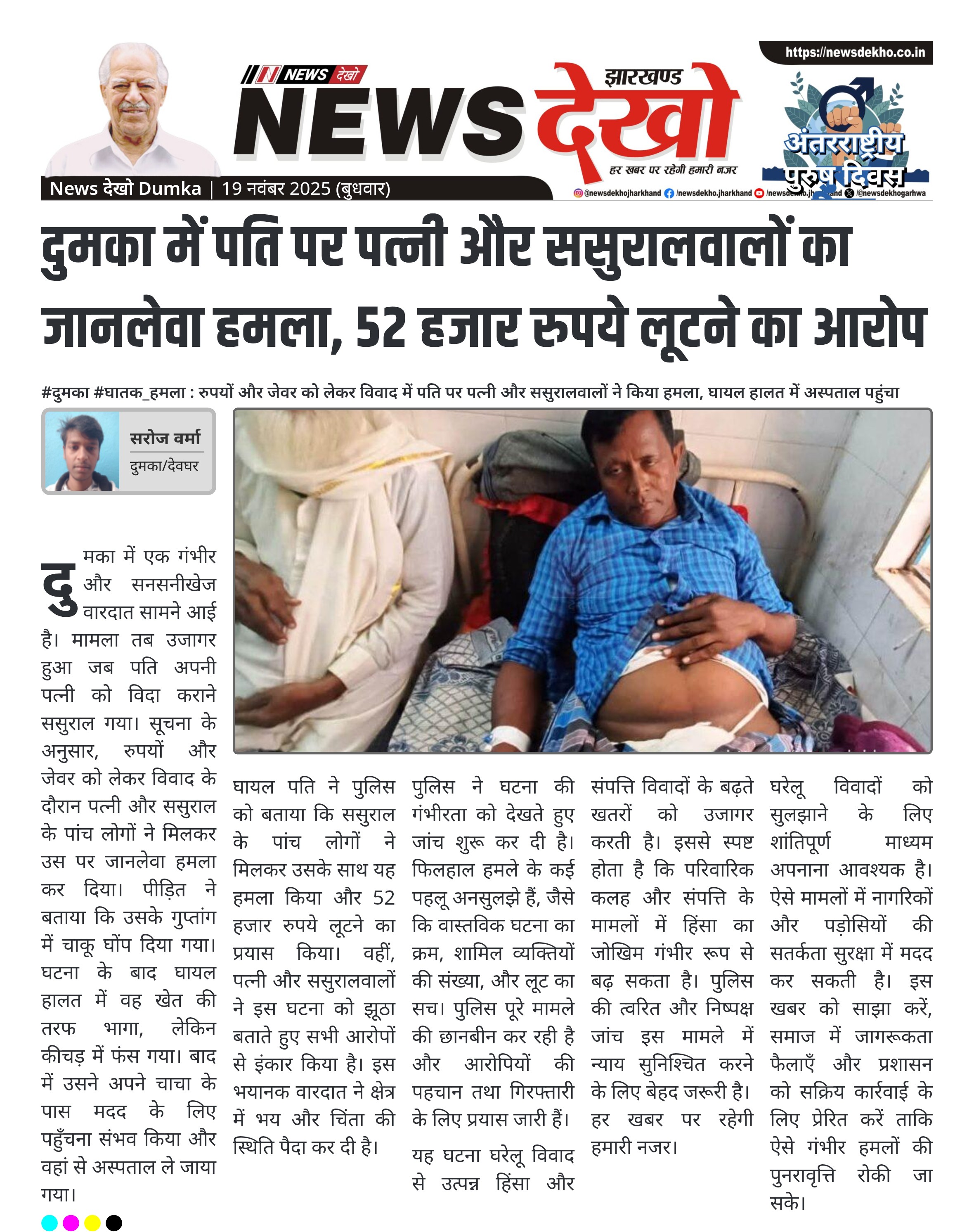 न्यूज़ देखो: दुमका में घरेलू हिंसा और लूट की गंभीर घटना