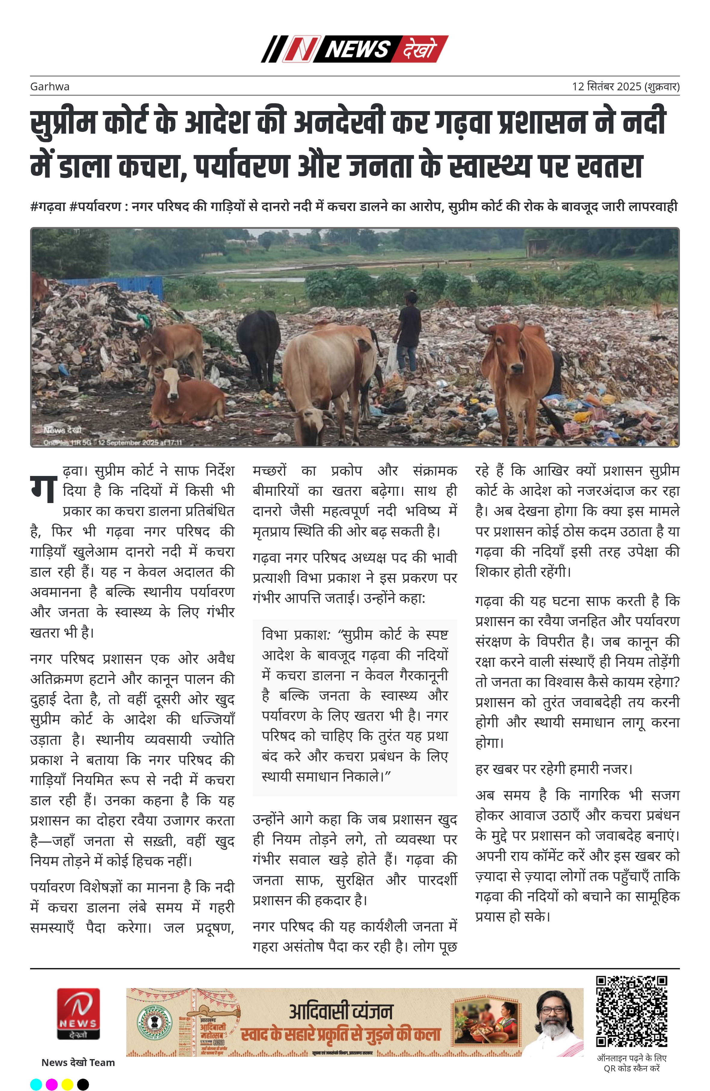विभा प्रकाश: “सुप्रीम कोर्ट के स्पष्ट आदेश के बावजूद गढ़वा की नदियों में कचरा डालना न केवल गैरकानूनी है बल्कि जनता के स्वास्थ्य और पर्यावरण के लिए खतरा भी है। नगर परिषद को चाहिए कि तुरंत यह प्रथा बंद करे और कचरा प्रबंधन के लिए स्थायी समाधान निकाले।”
