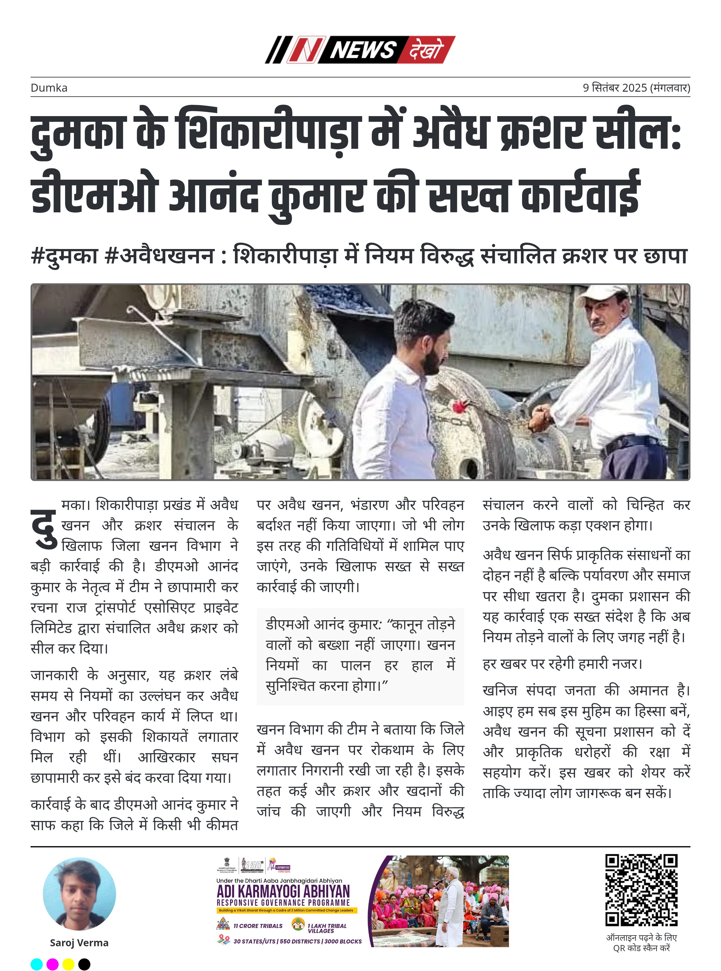 न्यूज़ देखो: अवैध खनन पर जीरो टॉलरेंस नीति