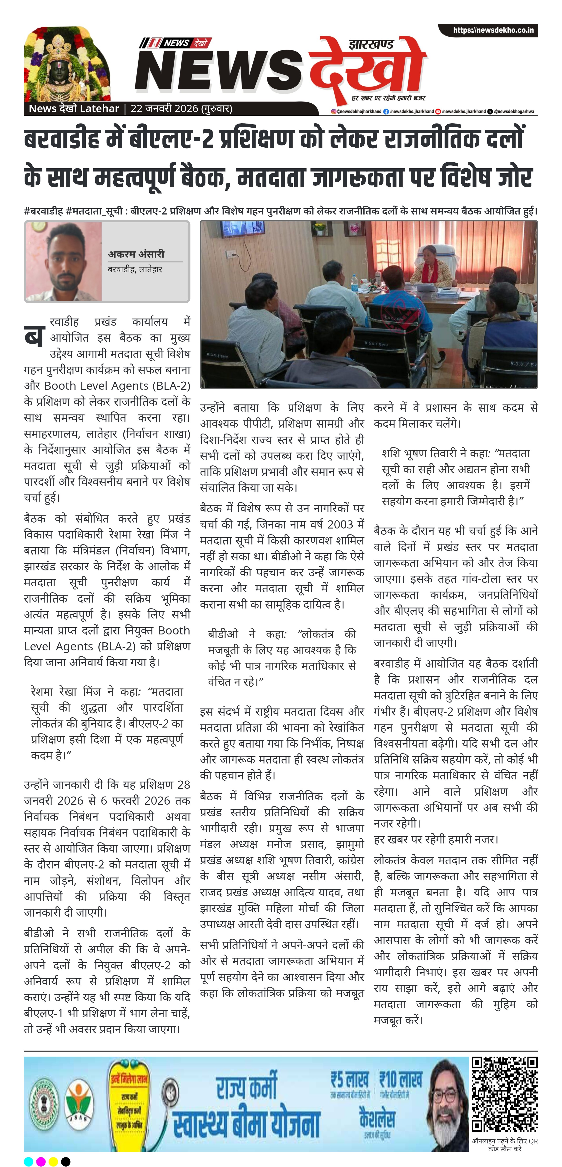 बरवाडीह में आयोजित यह बैठक दर्शाती है कि प्रशासन और राजनीतिक दल मतदाता सूची को त्रुटिरहित बनाने के लिए गंभीर हैं। बीएलए-2 प्रशिक्षण और विशेष गहन पुनरीक्षण से मतदाता सूची की विश्वसनीयता बढ़ेगी। यदि सभी दल और प्रतिनिधि सक्रिय सहयोग करें, तो कोई भी पात्र नागरिक मताधिकार से वंचित नहीं रहेगा। आने वाले प्रशिक्षण और जागरूकता अभियानों पर अब सभी की नजर रहेगी।