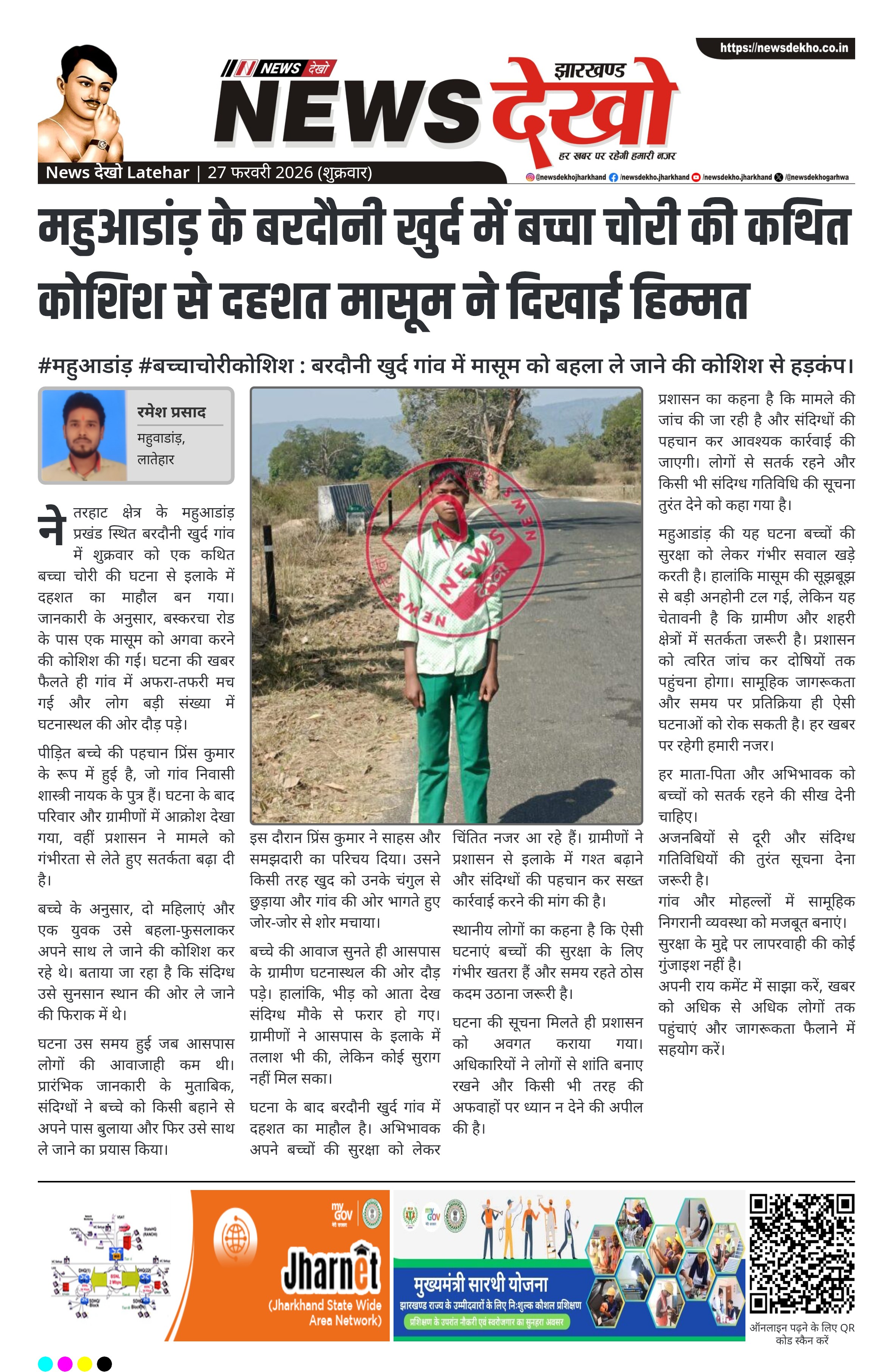 - बरदौनी खुर्द, महुआडांड़ में बच्चा चोरी की कथित कोशिश से हड़कंप।