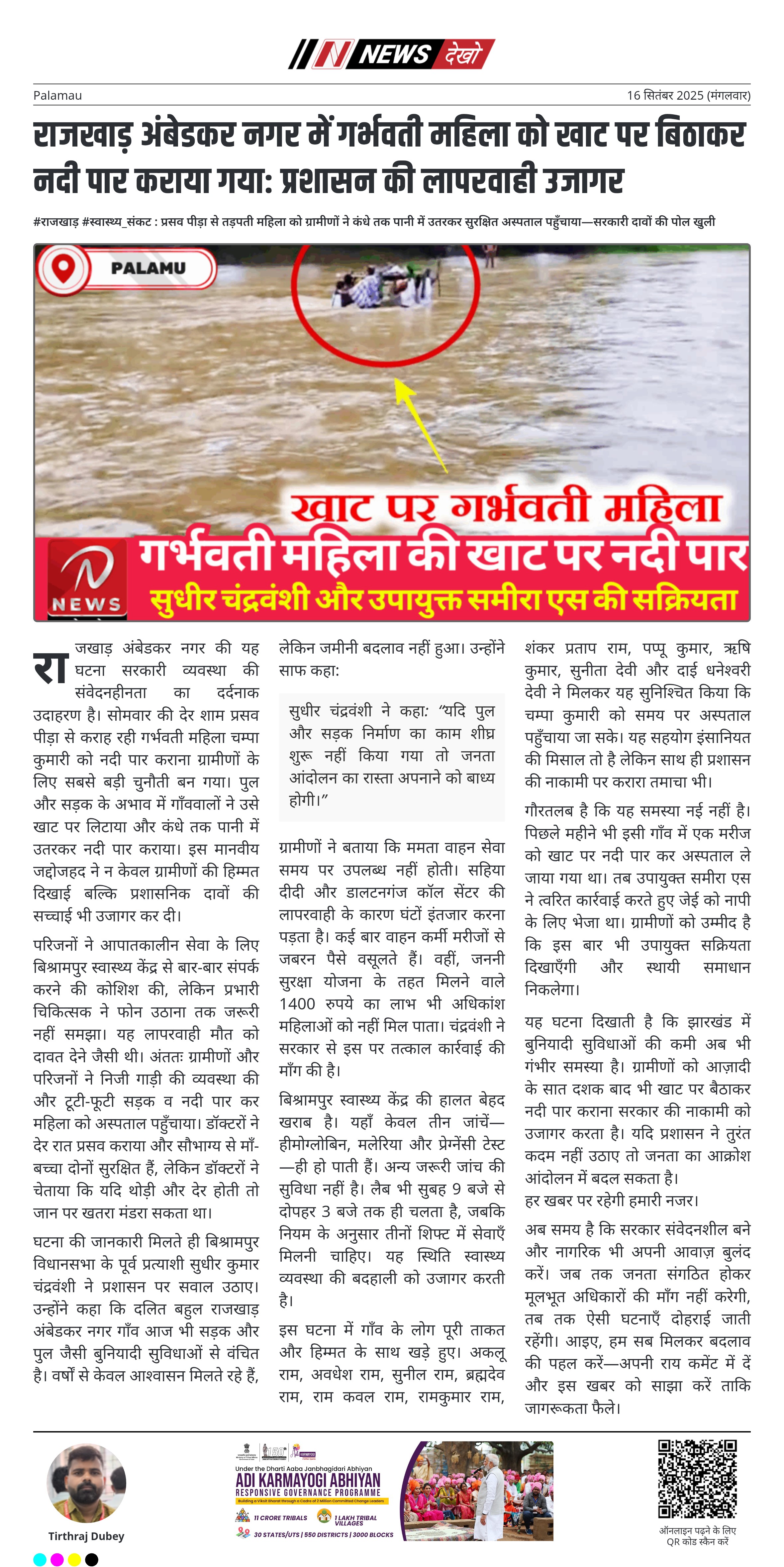 राजखाड़ अंबेडकर नगर की यह घटना सरकारी व्यवस्था की संवेदनहीनता का दर्दनाक उदाहरण है। सोमवार की देर शाम प्रसव पीड़ा से कराह रही गर्भवती महिला चम्पा कुमारी को नदी पार कराना ग्रामीणों के लिए सबसे बड़ी चुनौती बन गया। पुल और सड़क के अभाव में गाँववालों ने उसे खाट पर लिटाया और कंधे तक पानी में उतरकर नदी पार कराया। इस मानवीय जद्दोजहद ने न केवल ग्रामीणों की हिम्मत दिखाई बल्कि प्रशासनिक दावों की सच्चाई भी उजागर कर दी।