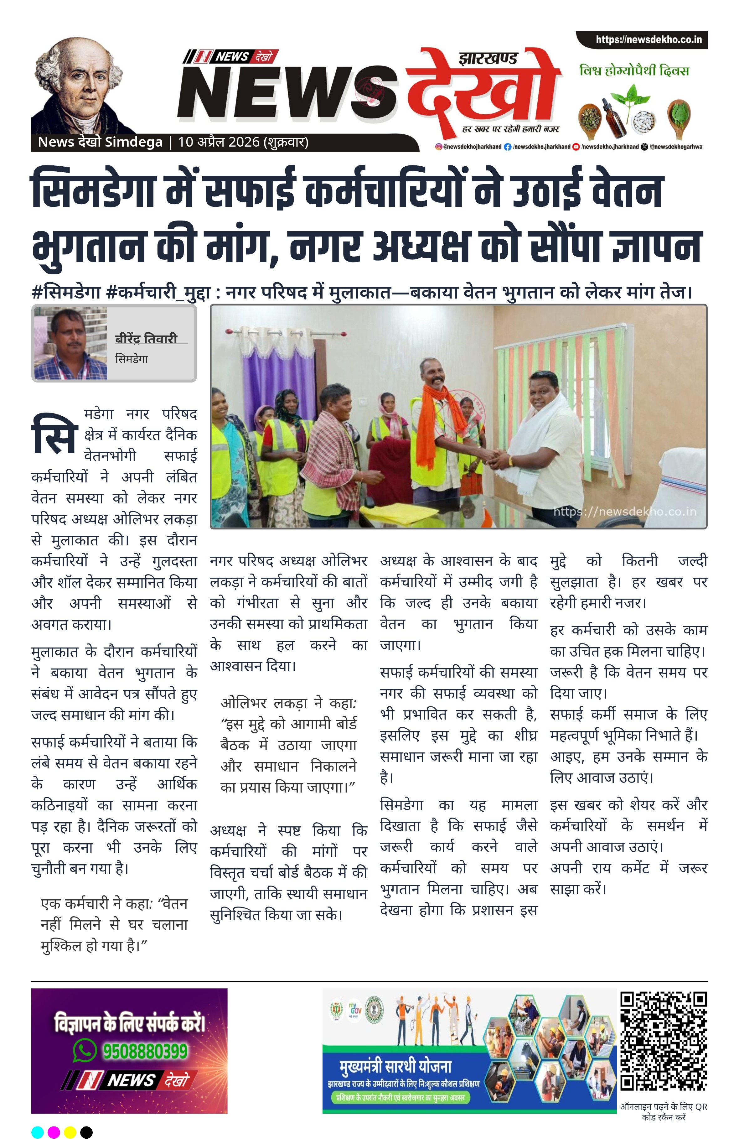नगर परिषद अध्यक्ष ओलिभर लकड़ा ने कर्मचारियों की बातों को गंभीरता से सुना और उनकी समस्या को प्राथमिकता के साथ हल करने का आश्वासन दिया।
