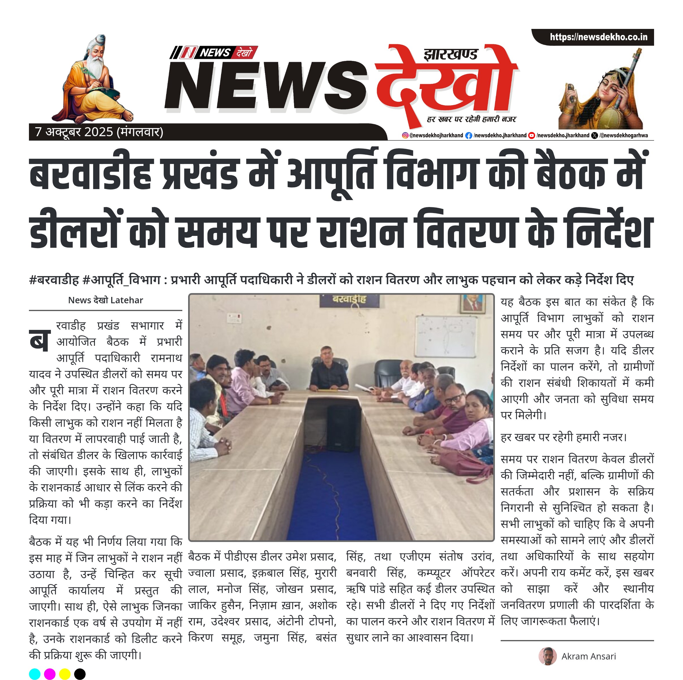 यह बैठक इस बात का संकेत है कि आपूर्ति विभाग लाभुकों को राशन समय पर और पूरी मात्रा में उपलब्ध कराने के प्रति सजग है। यदि डीलर निर्देशों का पालन करेंगे, तो ग्रामीणों की राशन संबंधी शिकायतों में कमी आएगी और जनता को सुविधा समय पर मिलेगी।