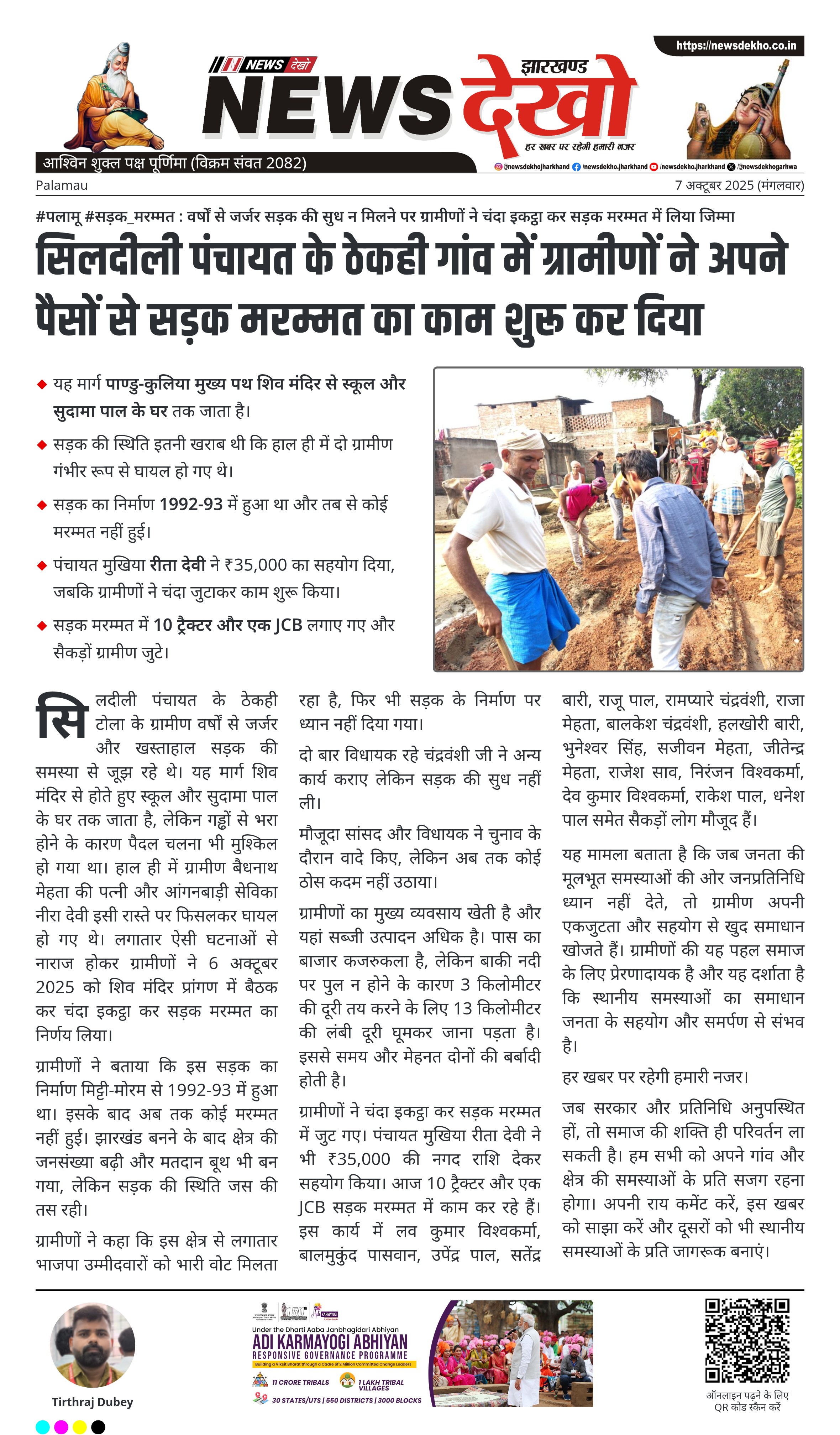 • सड़क मरम्मत में 10 ट्रैक्टर और एक JCB लगाए गए और सैकड़ों ग्रामीण जुटे।