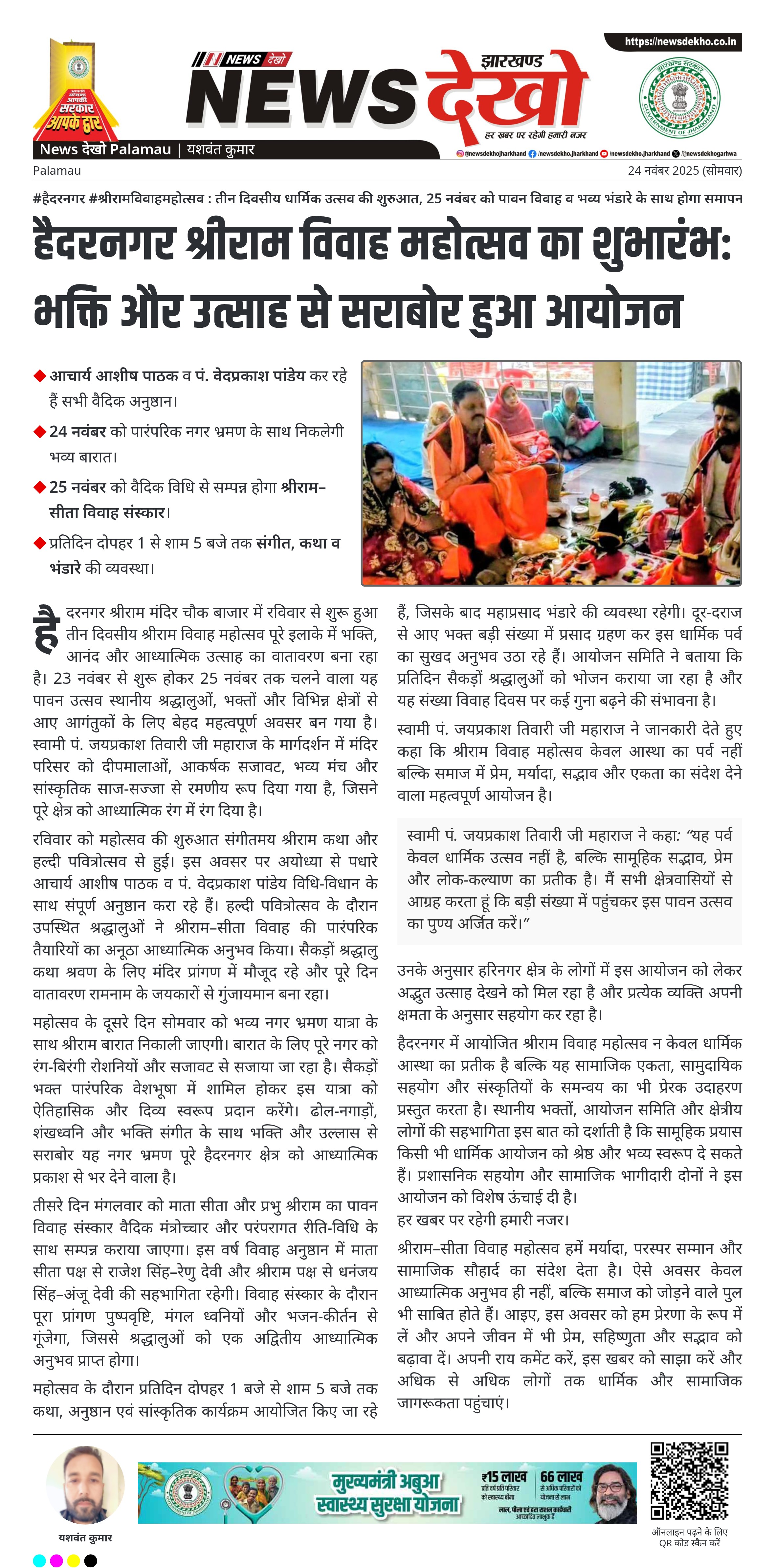 #हैदरनगर #श्रीरामविवाहमहोत्सव : तीन दिवसीय धार्मिक उत्सव की शुरुआत, 25 नवंबर को पावन विवाह व भव्य भंडारे के साथ होगा समापन
