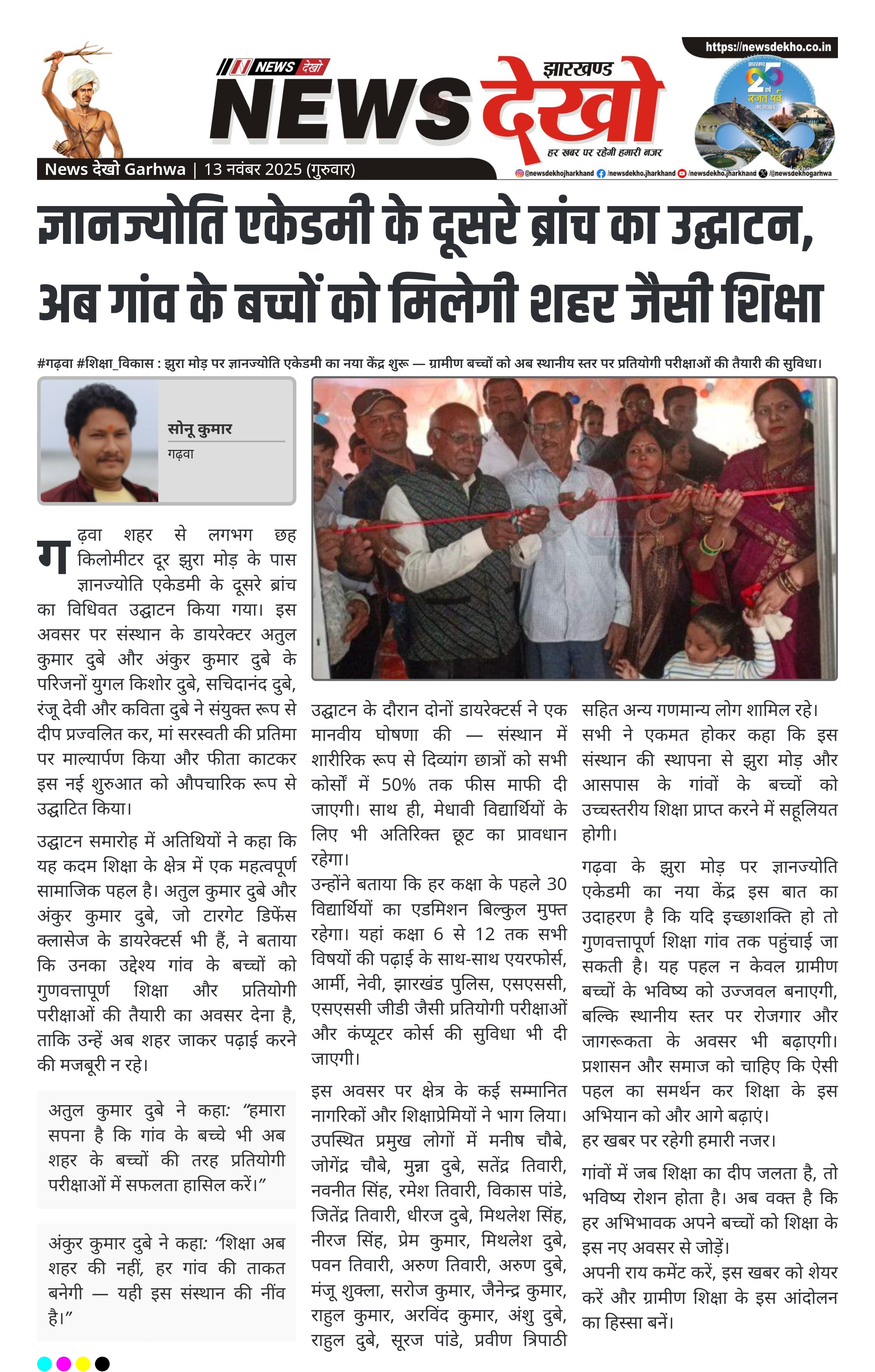 #गढ़वा #शिक्षा_विकास : झुरा मोड़ पर ज्ञानज्योति एकेडमी का नया केंद्र शुरू — ग्रामीण बच्चों को अब स्थानीय स्तर पर प्रतियोगी परीक्षाओं की तैयारी की सुविधा।