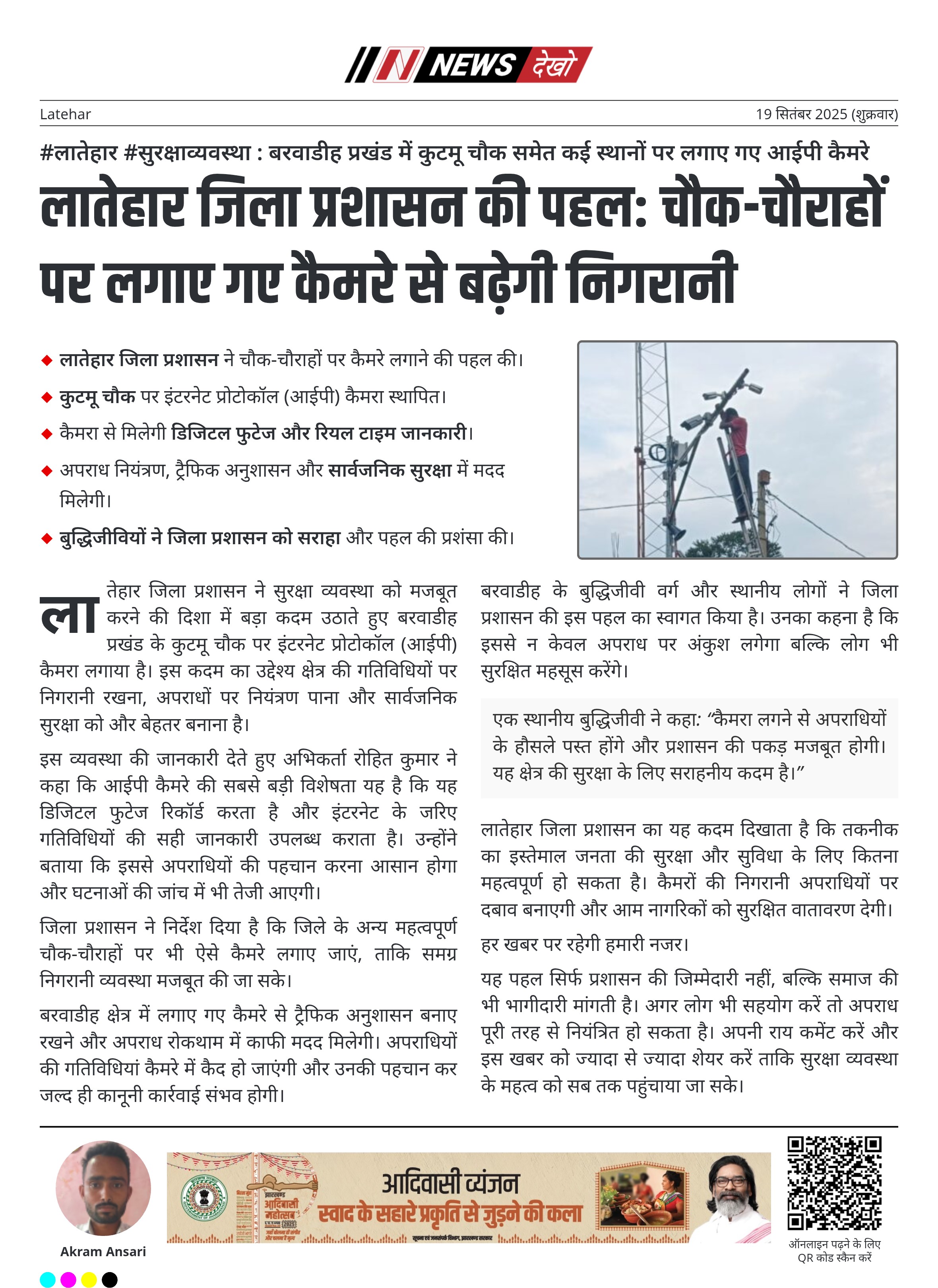 लातेहार जिला प्रशासन का यह कदम दिखाता है कि तकनीक का इस्तेमाल जनता की सुरक्षा और सुविधा के लिए कितना महत्वपूर्ण हो सकता है। कैमरों की निगरानी अपराधियों पर दबाव बनाएगी और आम नागरिकों को सुरक्षित वातावरण देगी।