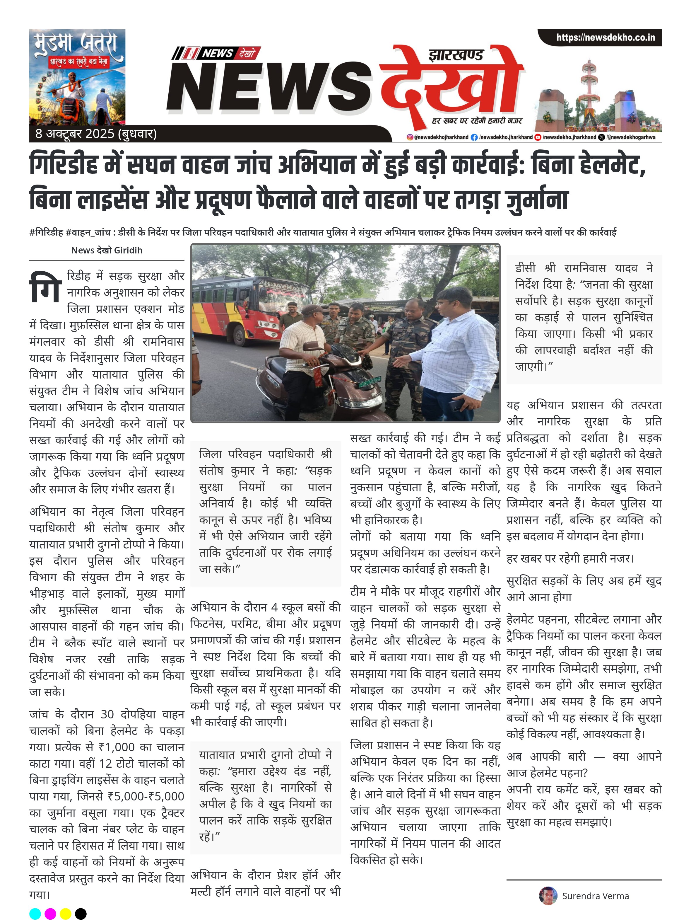 #गिरिडीह #वाहन_जांच : डीसी के निर्देश पर जिला परिवहन पदाधिकारी और यातायात पुलिस ने संयुक्त अभियान चलाकर ट्रैफिक नियम उल्लंघन करने वालों पर की कार्रवाई