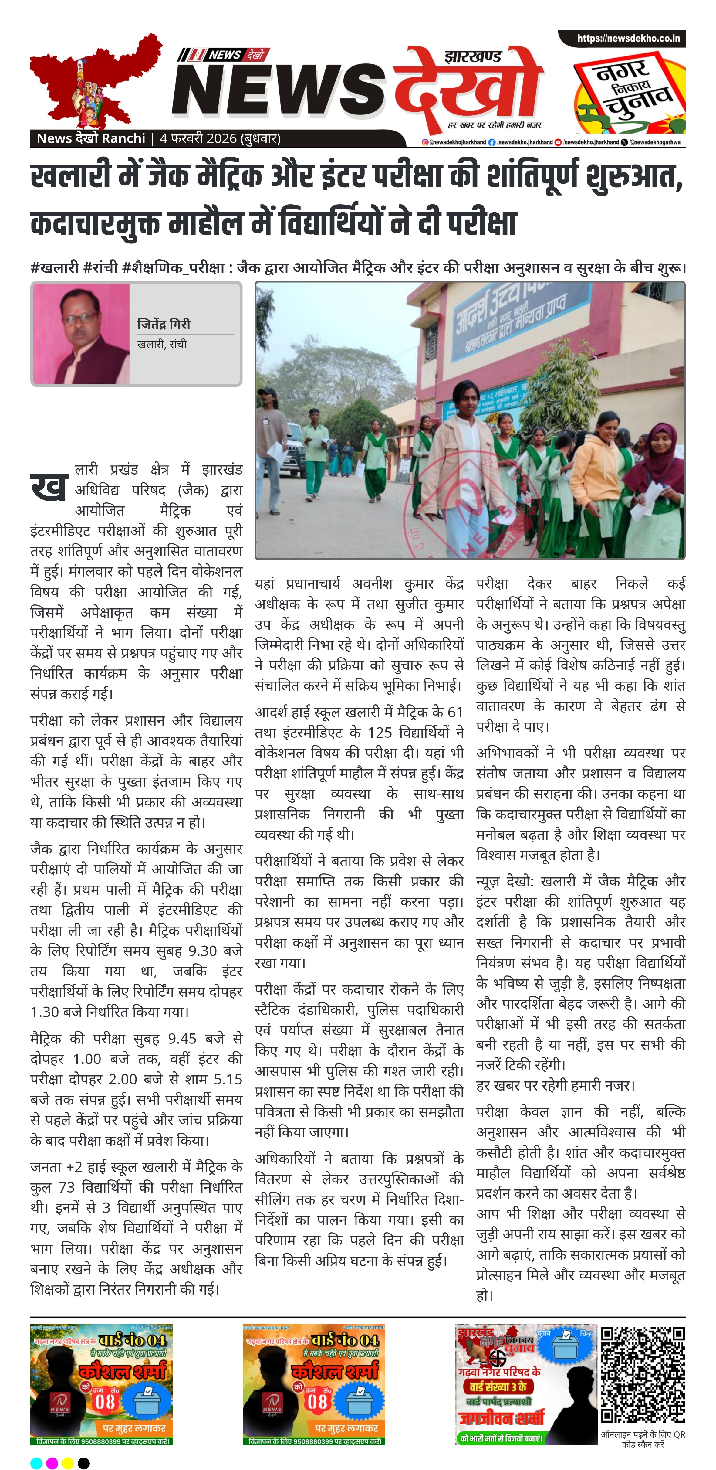 - खलारी, रांची में जैक मैट्रिक और इंटर परीक्षा की शांतिपूर्ण शुरुआत।