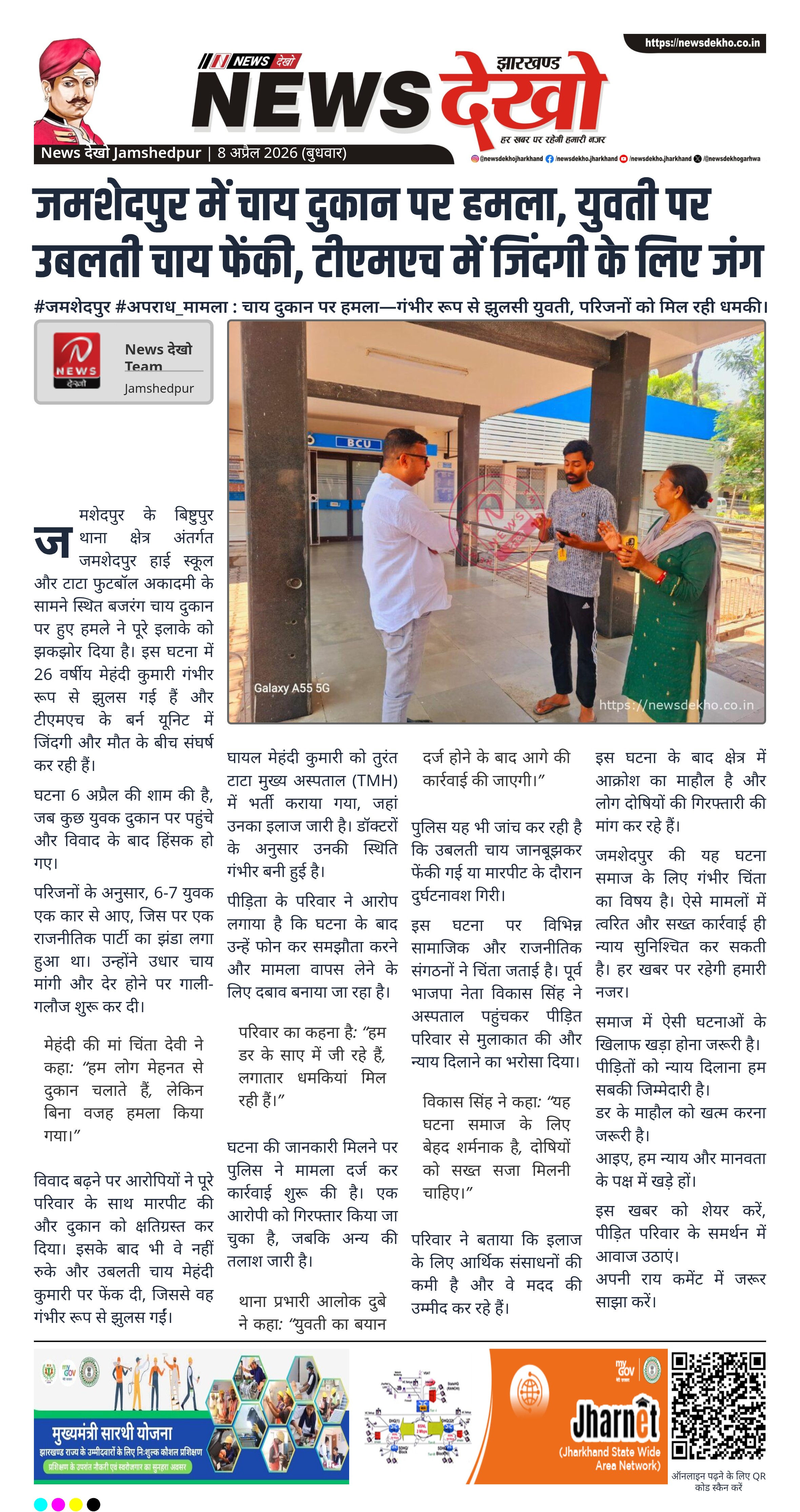 #जमशेदपुर #अपराध_मामला : चाय दुकान पर हमला—गंभीर रूप से झुलसी युवती, परिजनों को मिल रही धमकी।