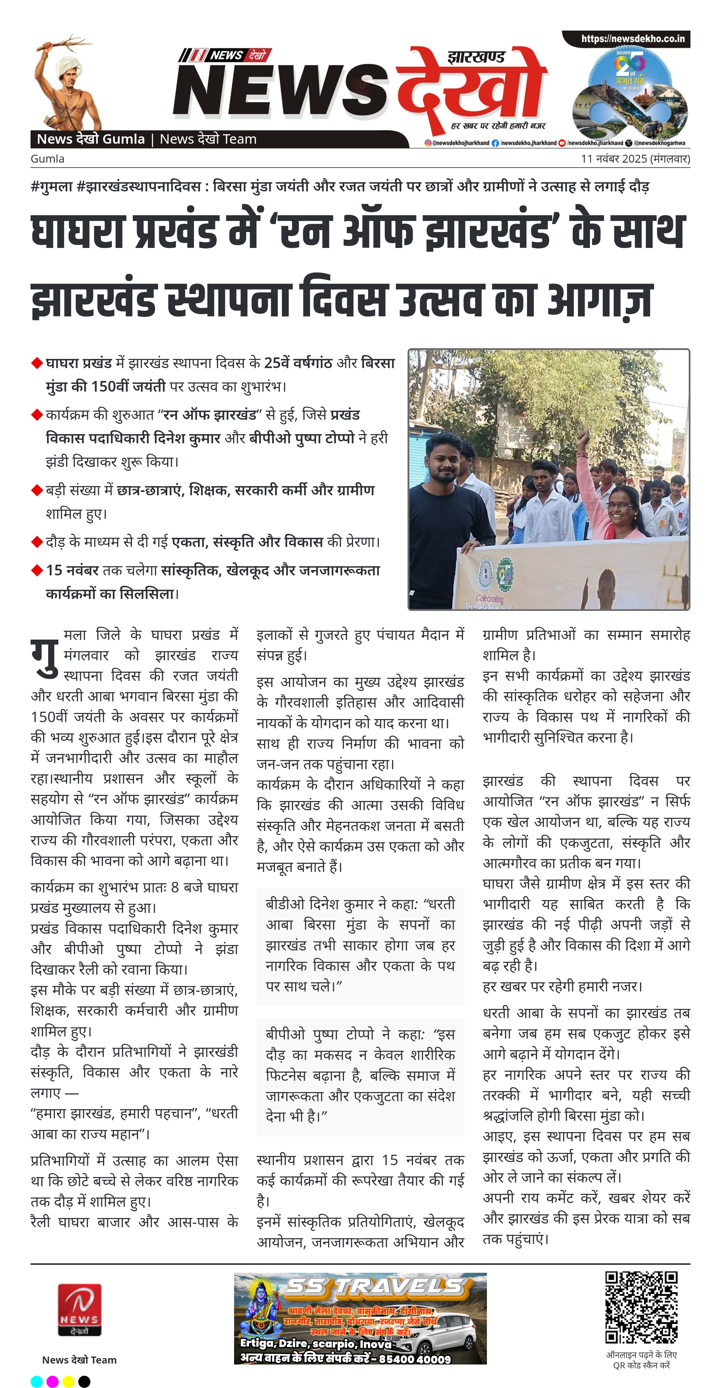 #गुमला #झारखंडस्थापनादिवस : बिरसा मुंडा जयंती और रजत जयंती पर छात्रों और ग्रामीणों ने उत्साह से लगाई दौड़