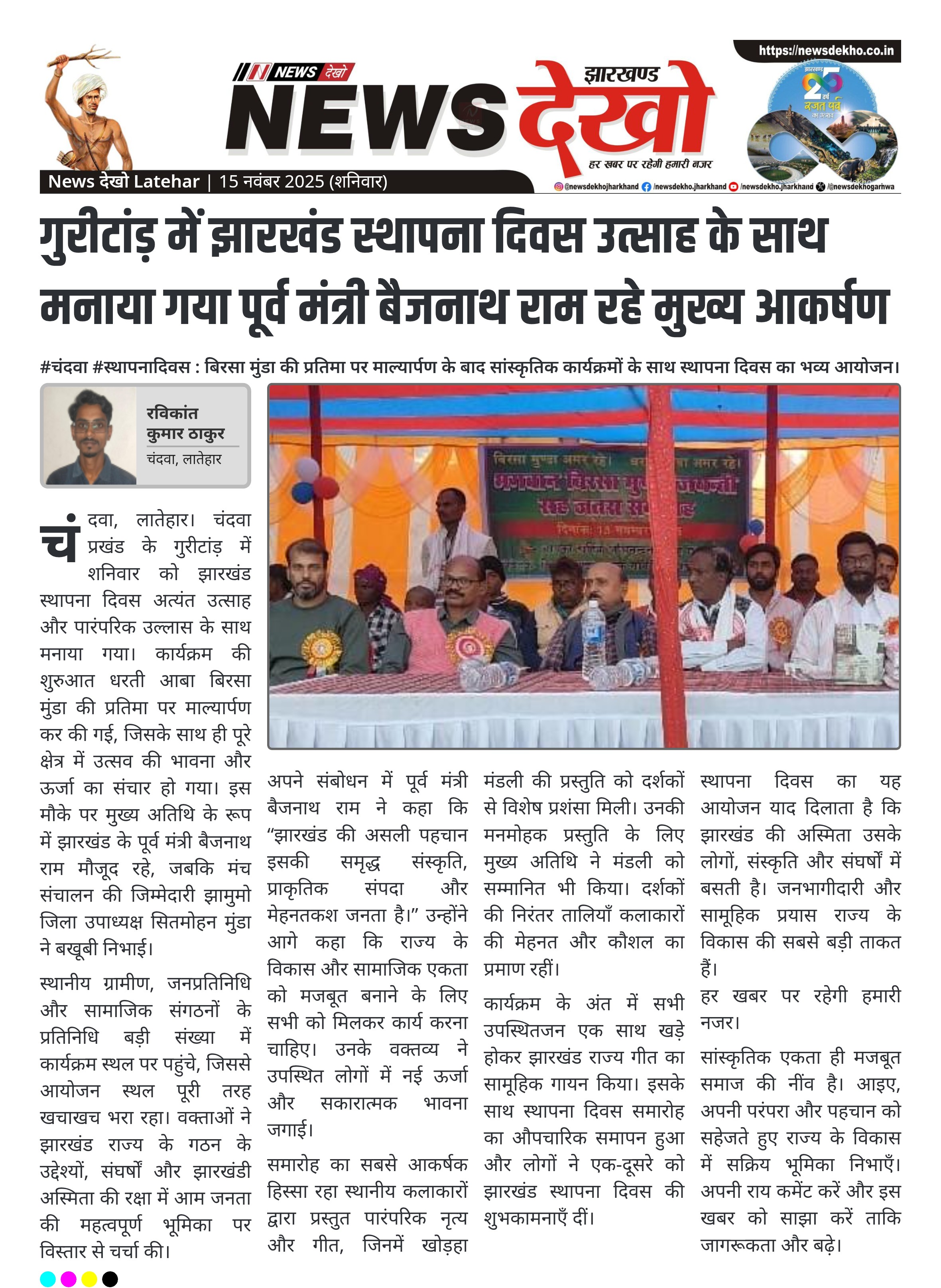 स्थापना दिवस का यह आयोजन याद दिलाता है कि झारखंड की अस्मिता उसके लोगों, संस्कृति और संघर्षों में बसती है। जनभागीदारी और सामूहिक प्रयास राज्य के विकास की सबसे बड़ी ताकत हैं।