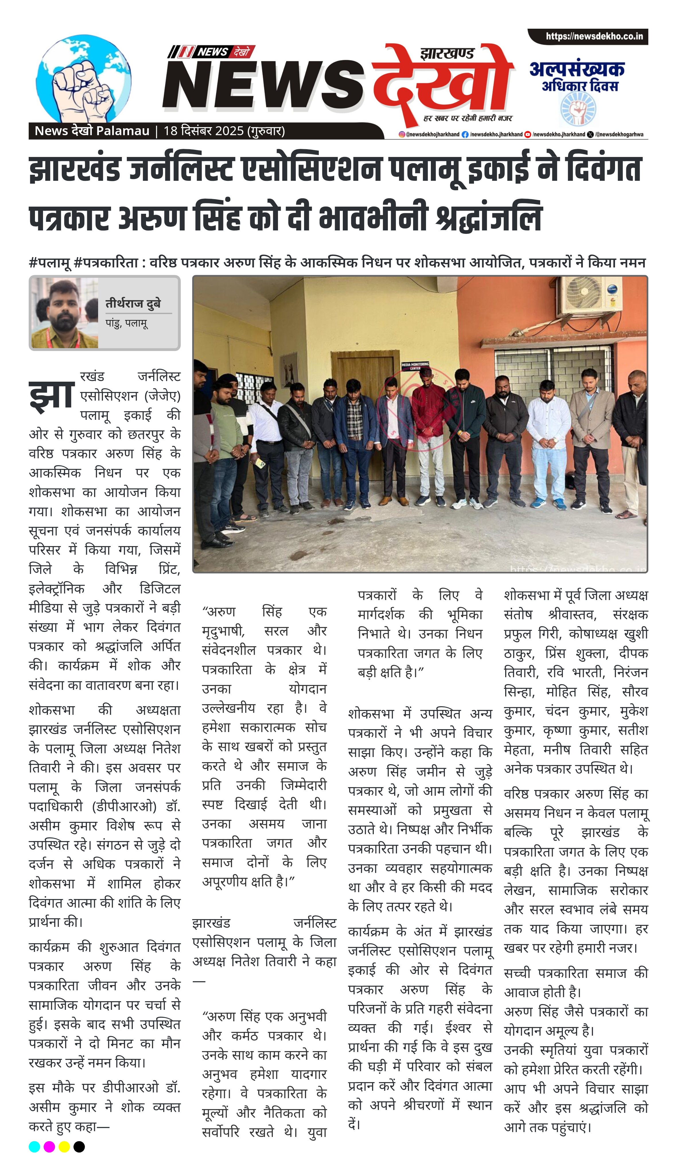 #पलामू #पत्रकारिता : वरिष्ठ पत्रकार अरुण सिंह के आकस्मिक निधन पर शोकसभा आयोजित, पत्रकारों ने किया नमन