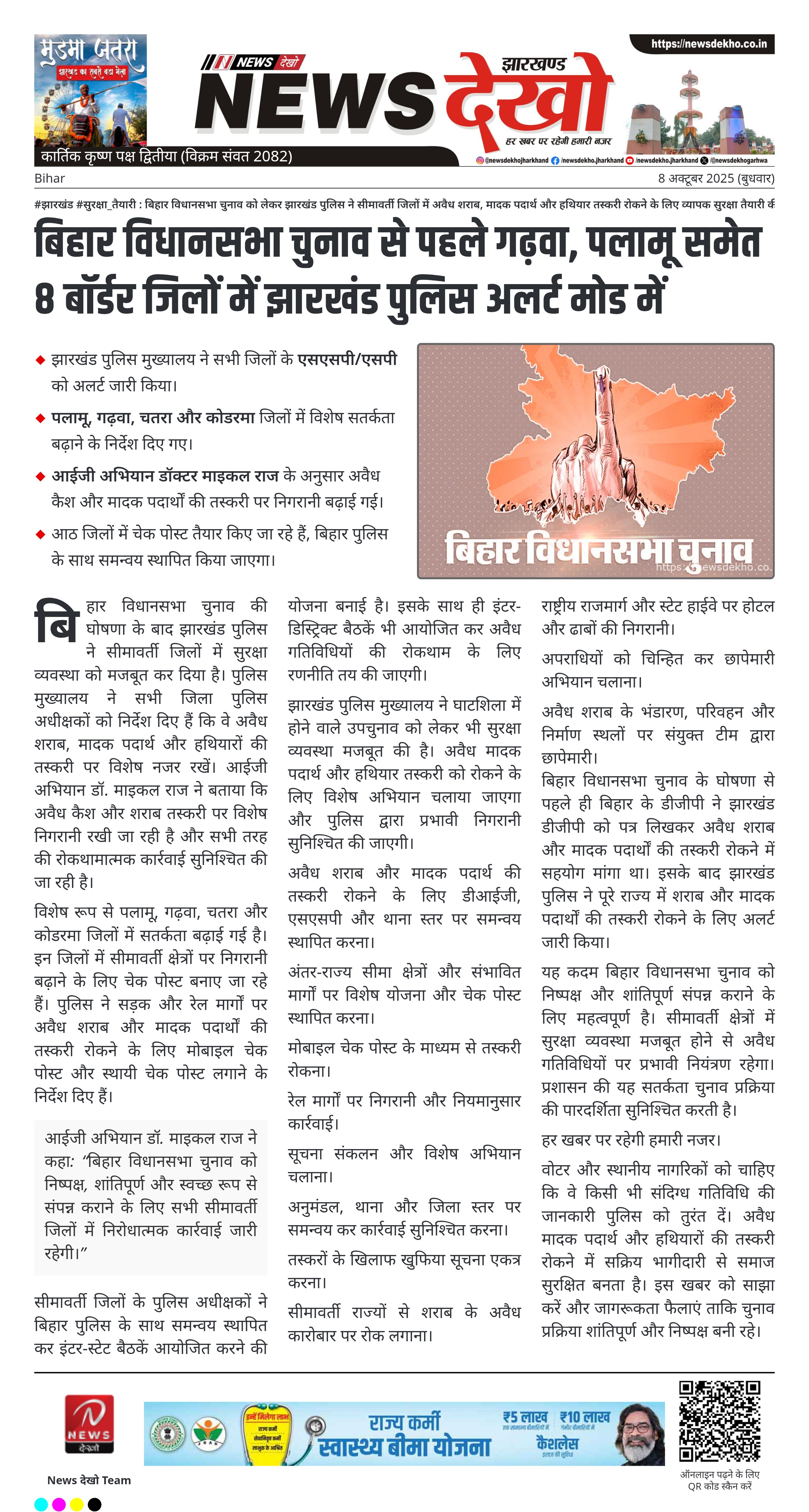 न्यूज़ देखो: झारखंड पुलिस का सीमावर्ती जिलों में चुनाव सुरक्षा और अवैध तस्करी पर सख्त नियंत्रण