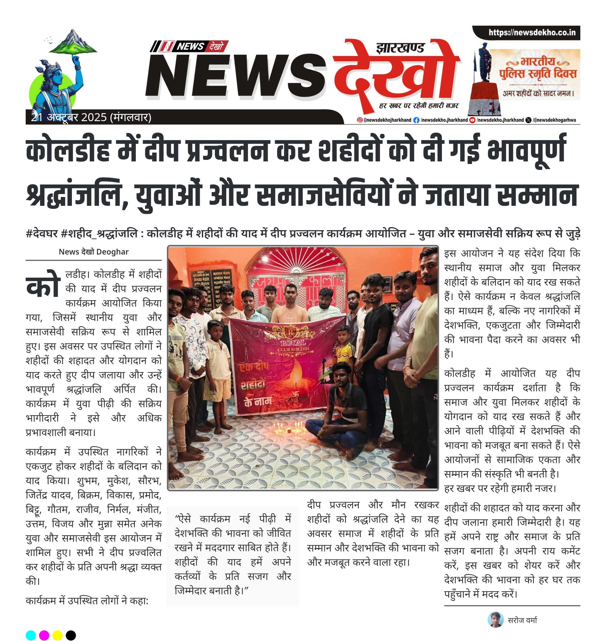 कोलडीह में दीप प्रज्वलन कर शहीदों को दी गई भावपूर्ण श्रद्धांजलि, युवाओं और समाजसेवियों ने जताया सम्मान