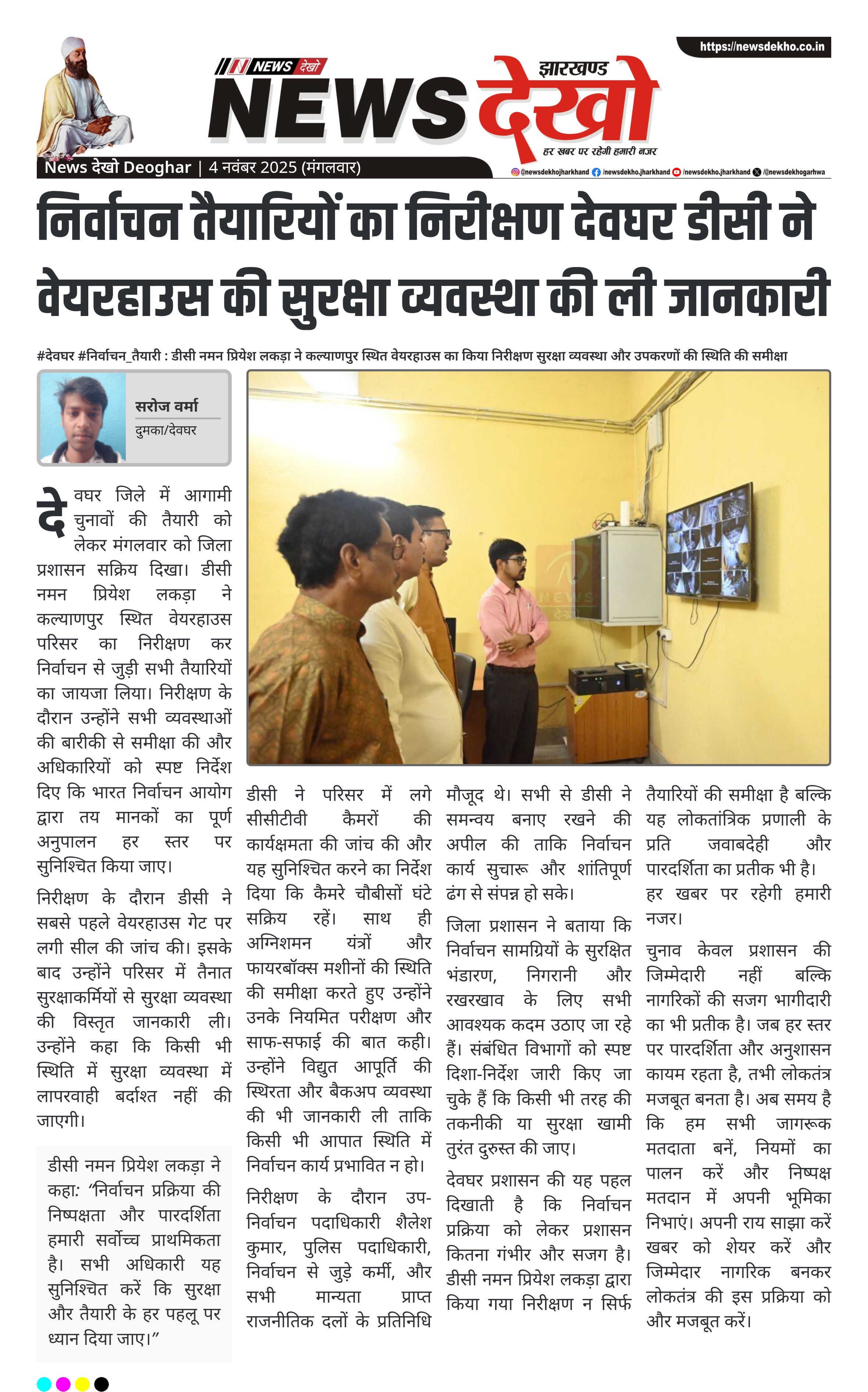 निर्वाचन तैयारियों का निरीक्षण देवघर डीसी ने वेयरहाउस की सुरक्षा व्यवस्था की ली जानकारी
