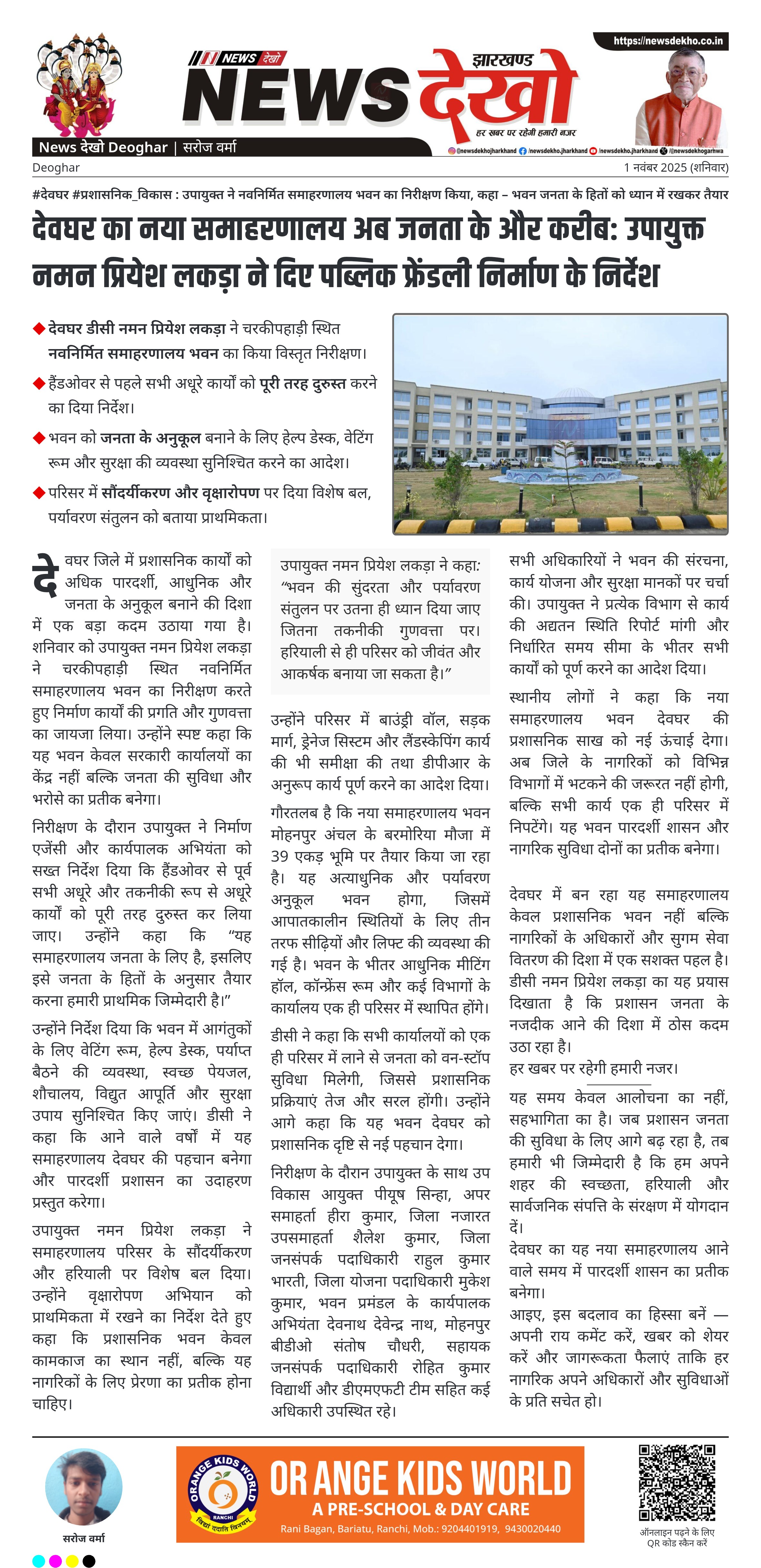 देवघर का नया समाहरणालय अब जनता के और करीब: उपायुक्त नमन प्रियेश लकड़ा ने दिए पब्लिक फ्रेंडली निर्माण के निर्देश